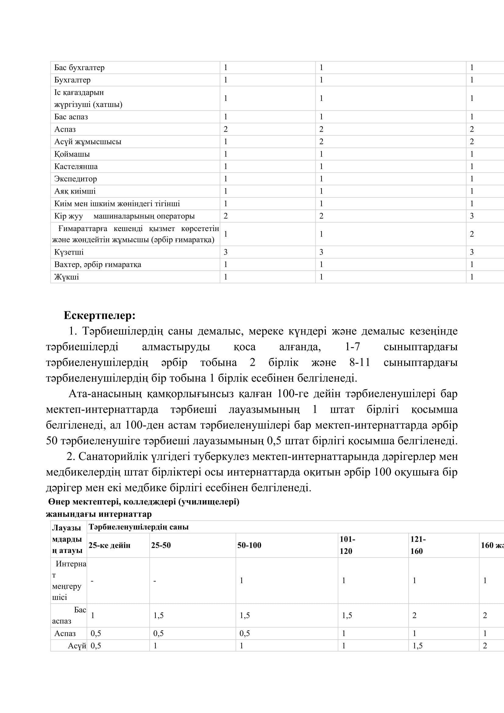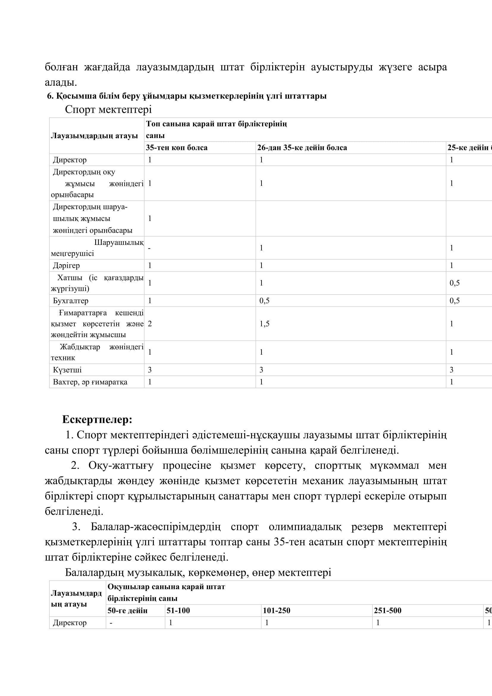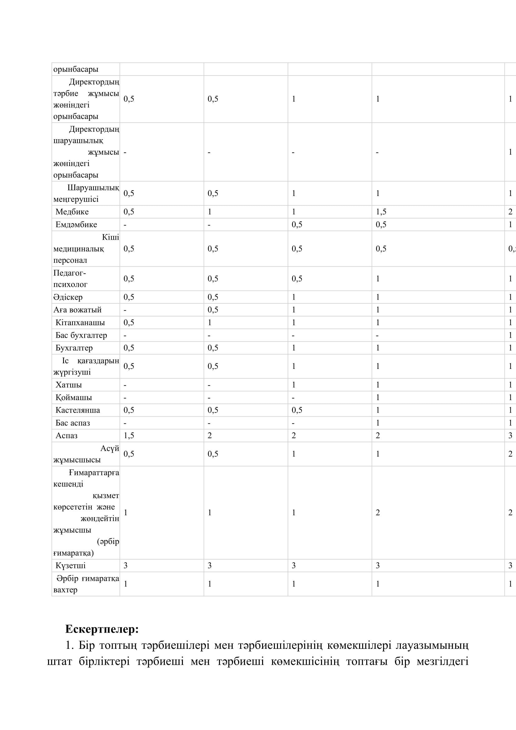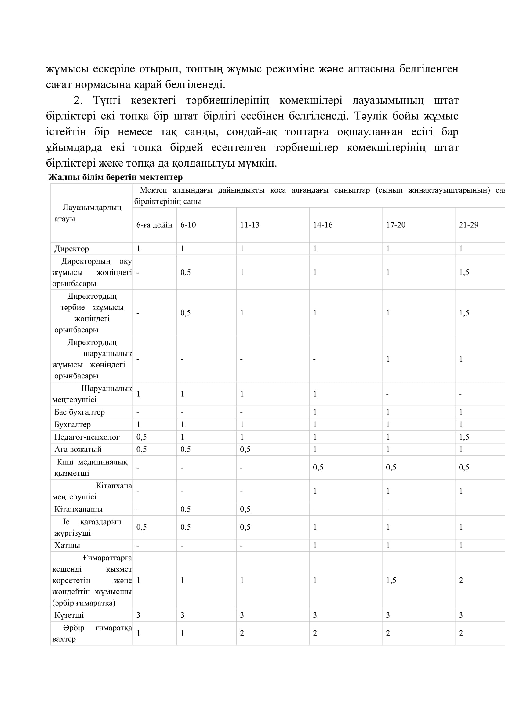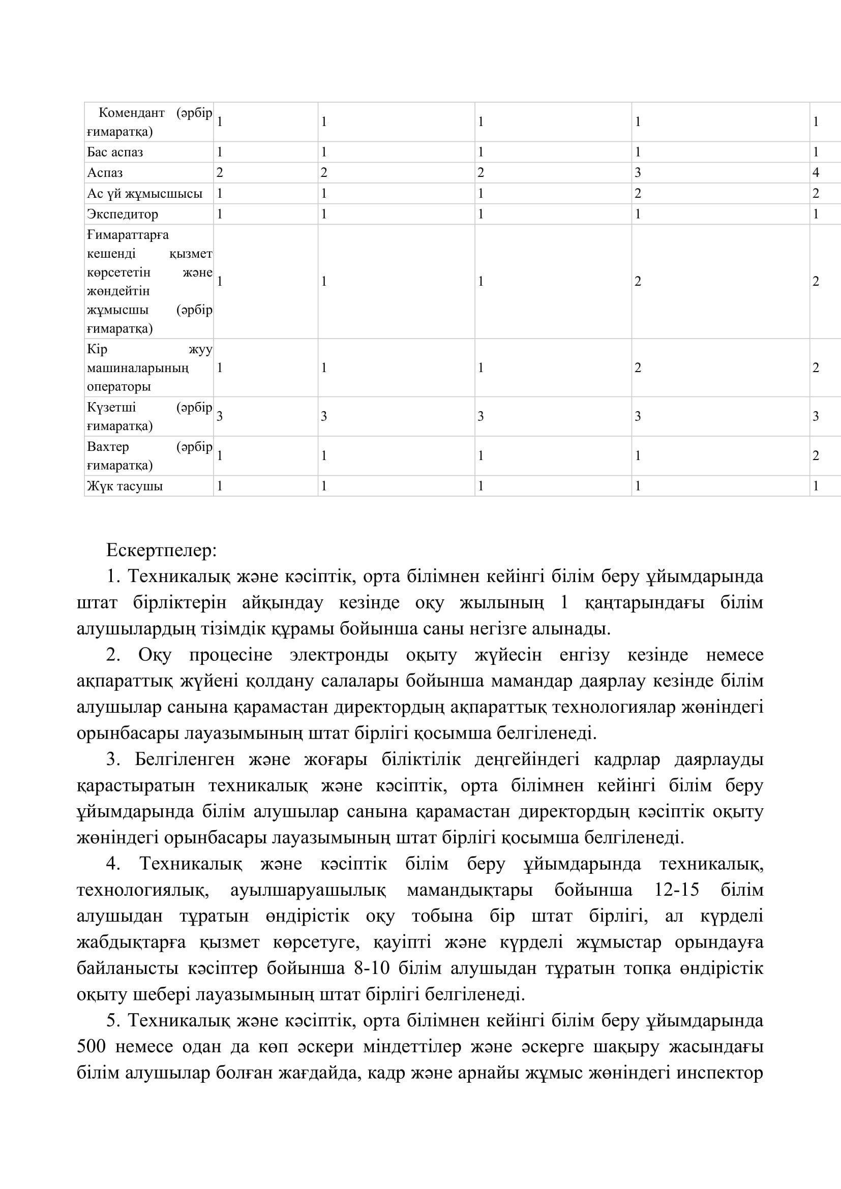 Мемлекеттік білім беру ұйымдары қызметкерлерінің үлгі штаттарын және педагог қызметкерлер мен оларға теңестірілген адамдар лауазымдарының тізбесін бекіту туралы » №110 мектеп-лицей