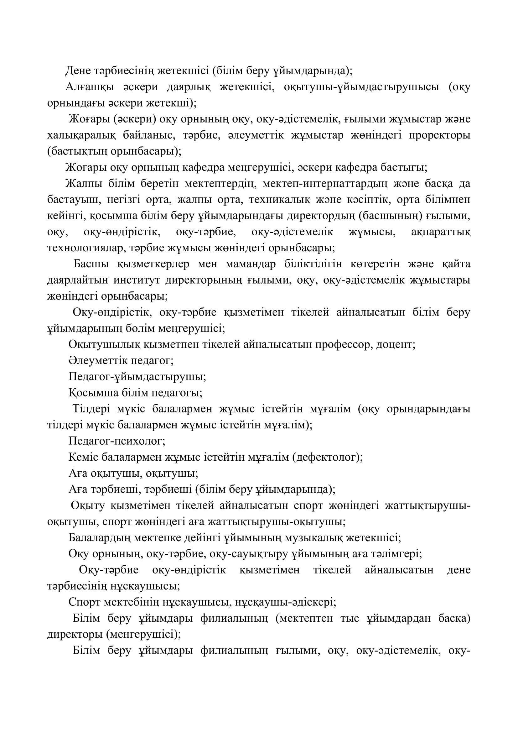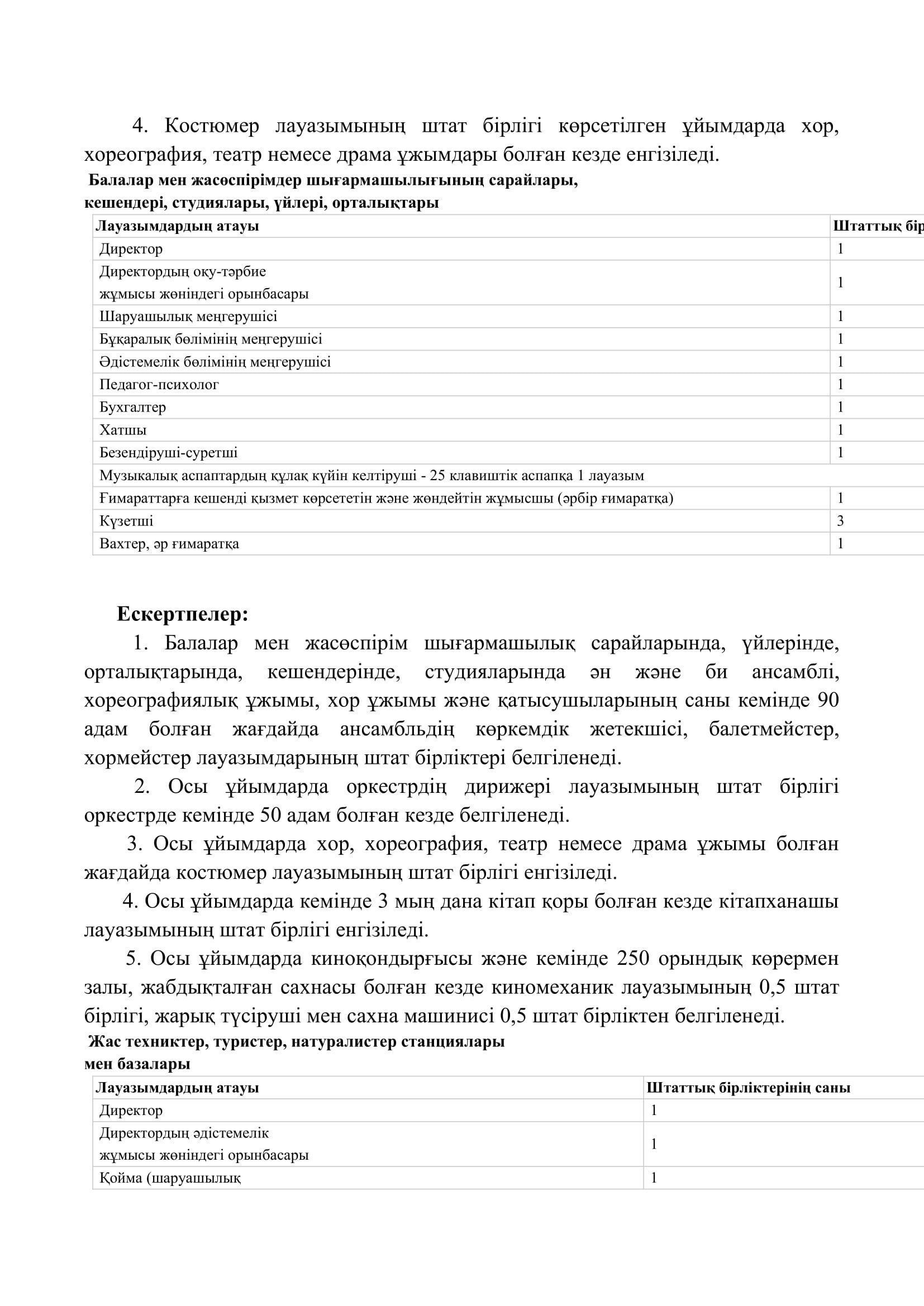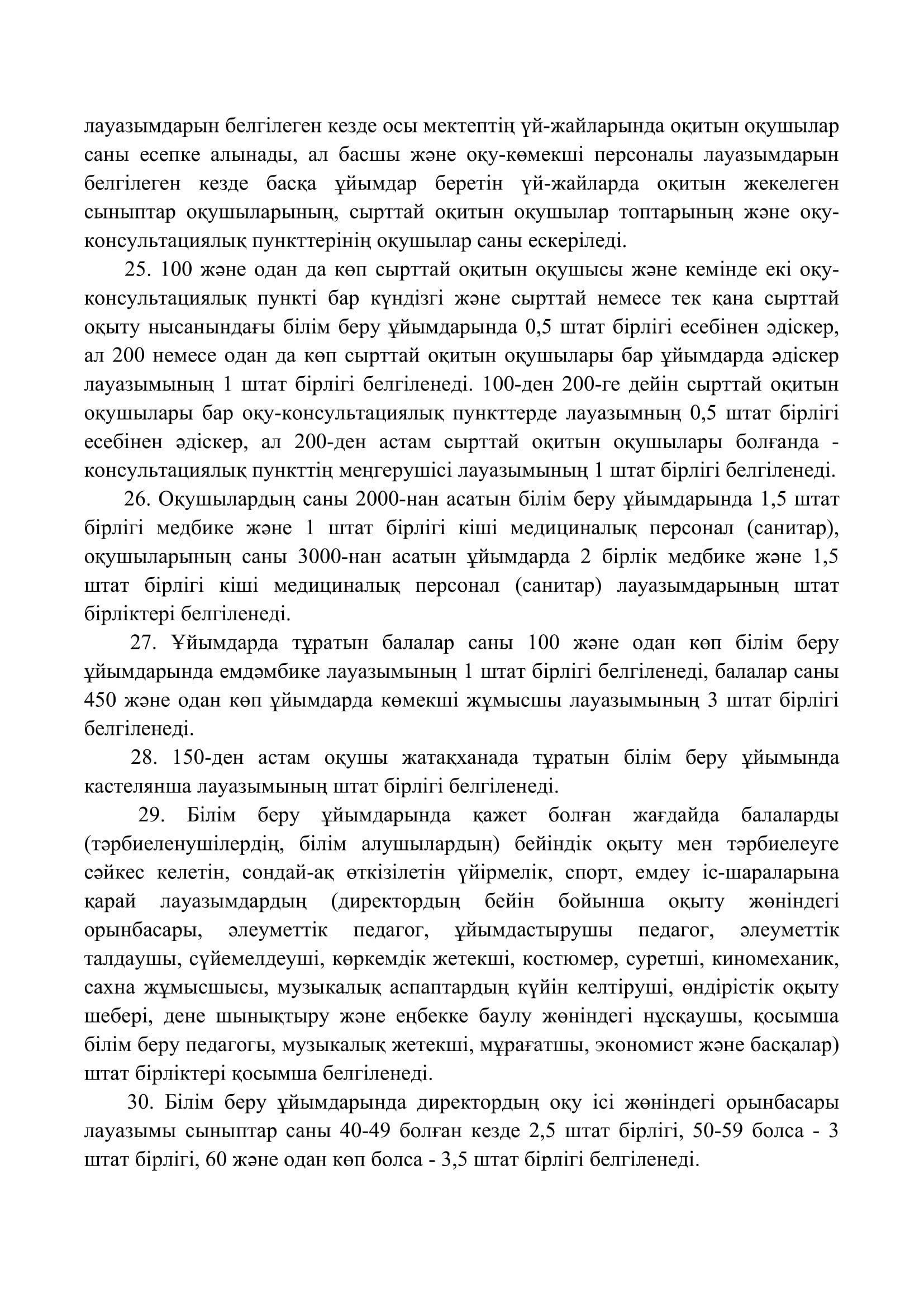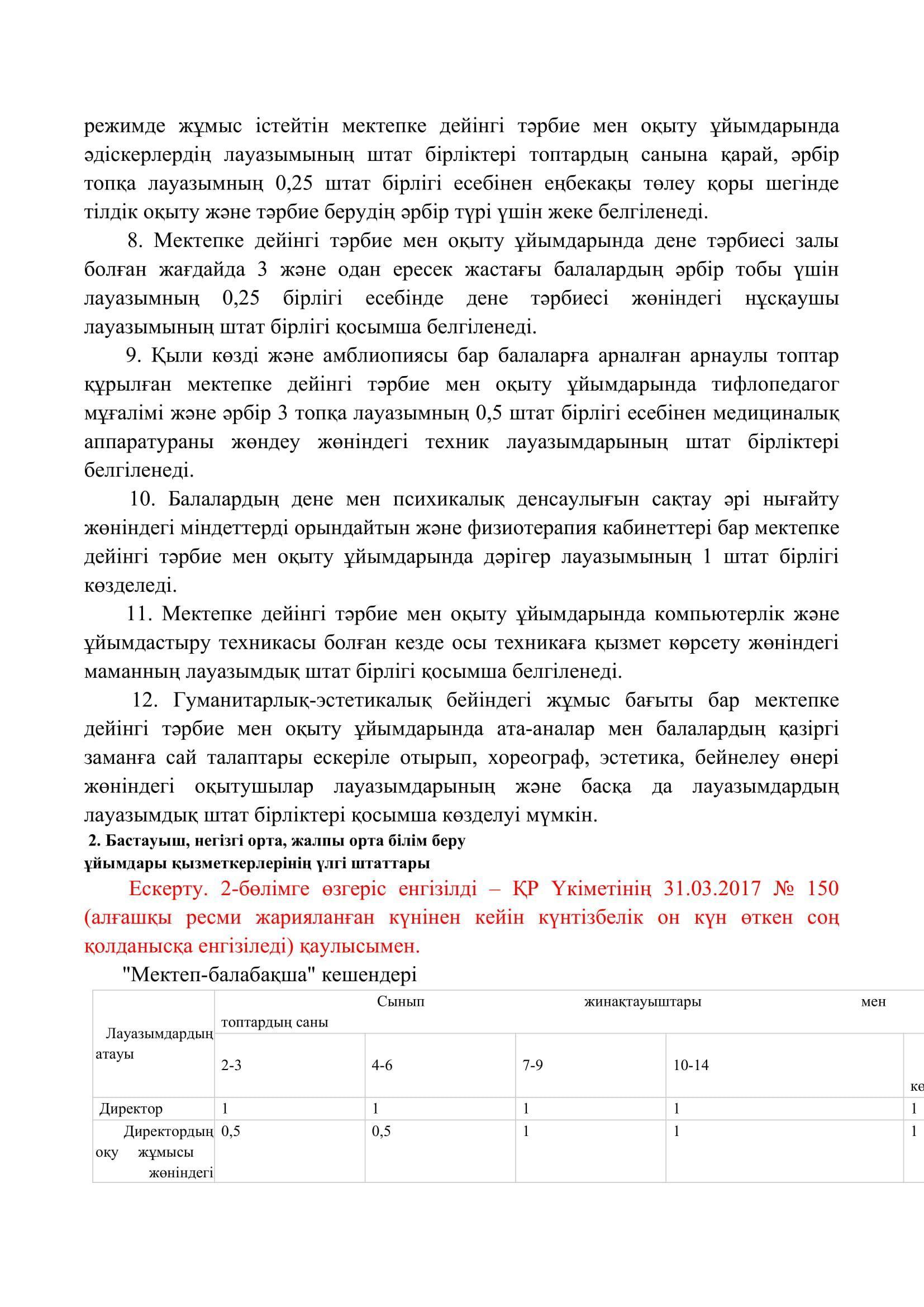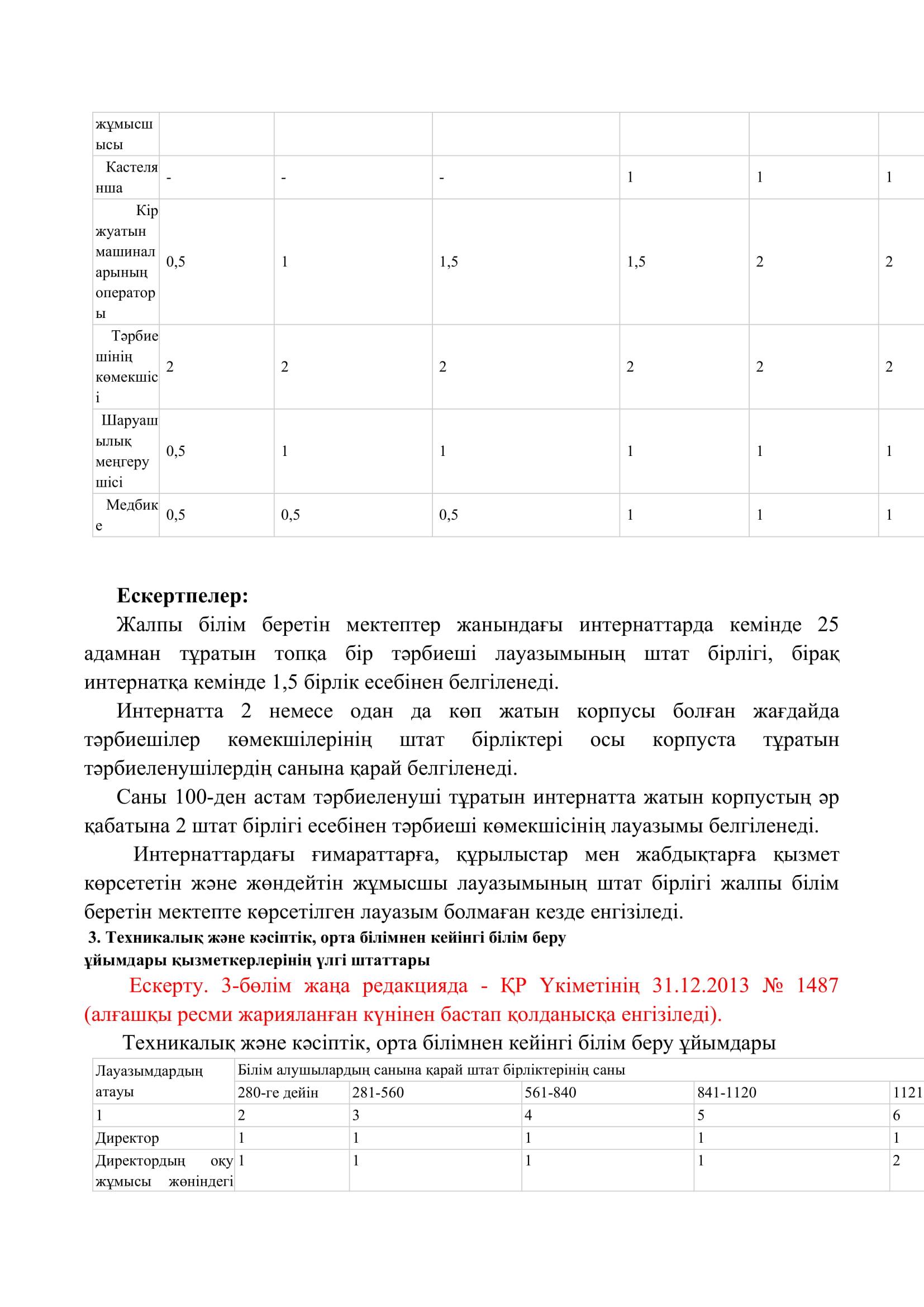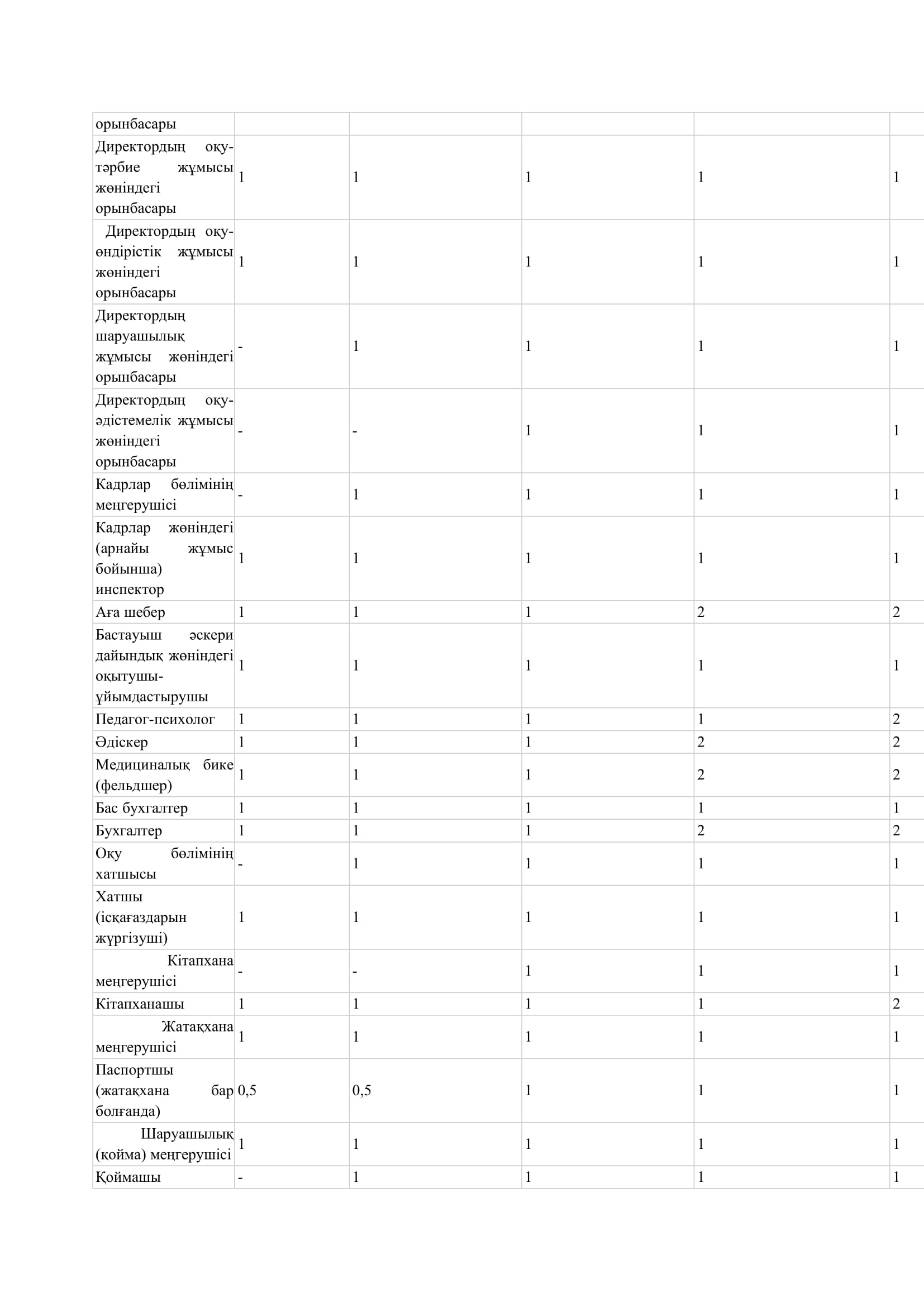 Мемлекеттік білім беру ұйымдары қызметкерлерінің үлгі штаттарын және педагог қызметкерлер мен оларға теңестірілген адамдар лауазымдарының тізбесін бекіту туралы » №110 мектеп-лицей