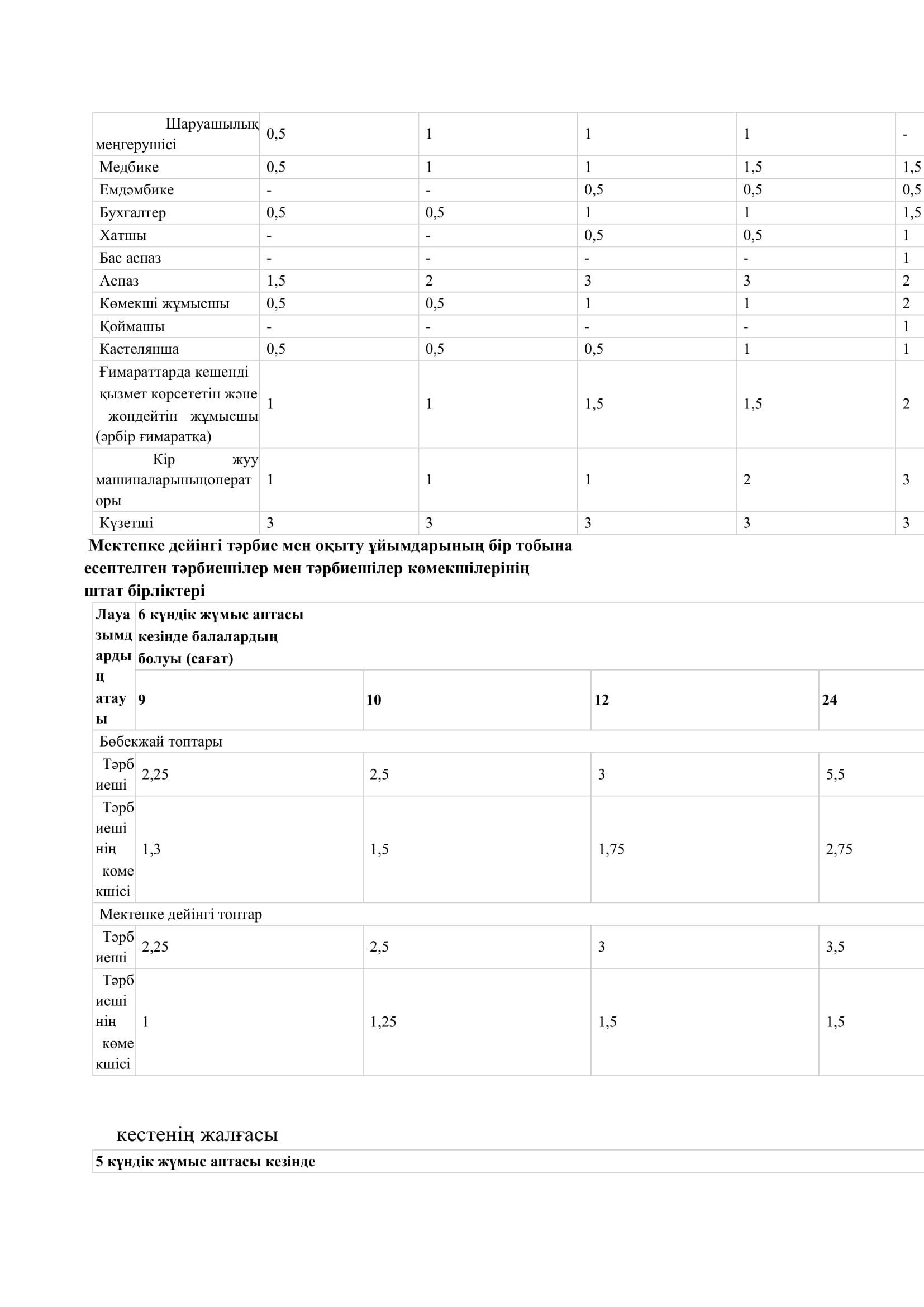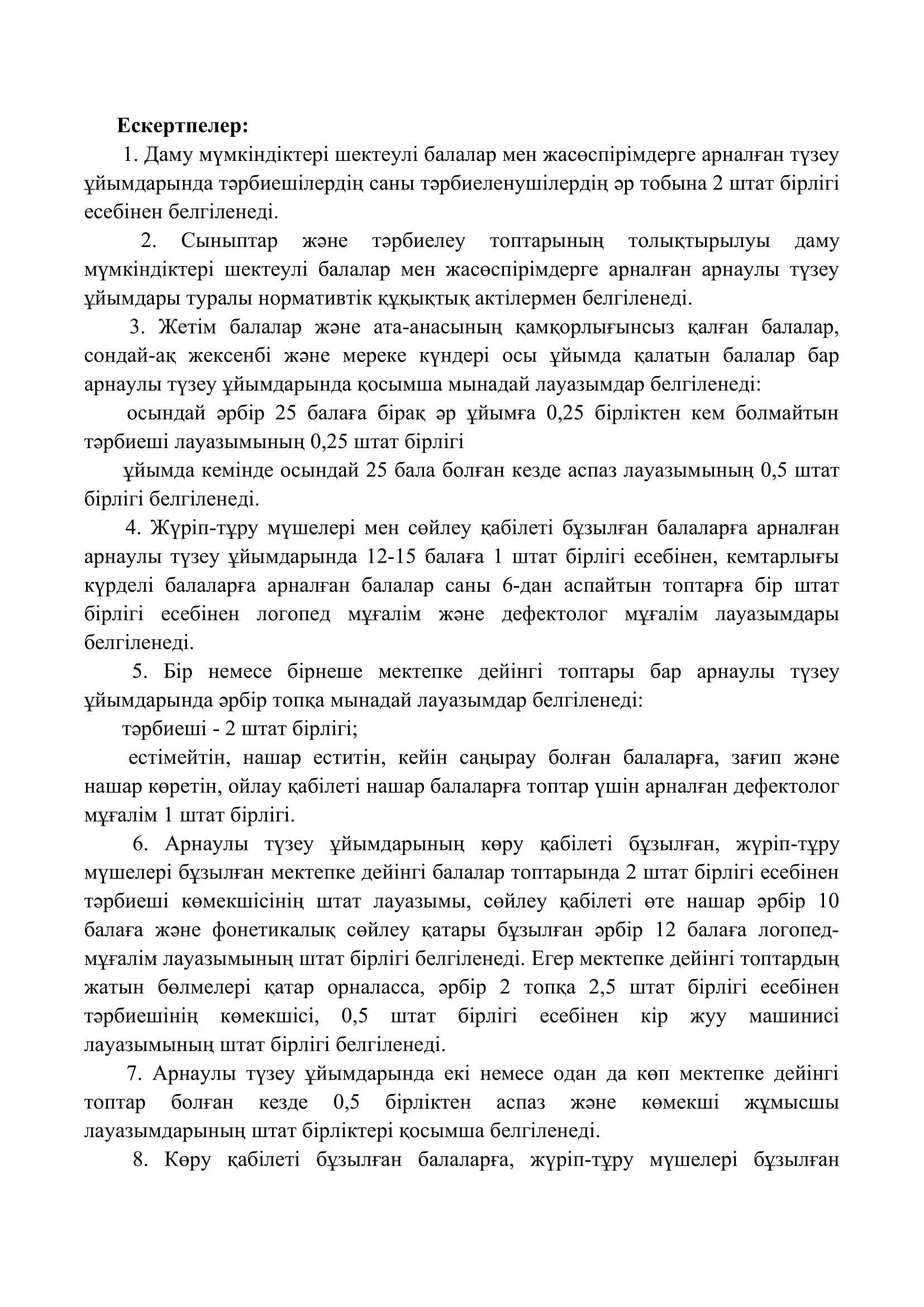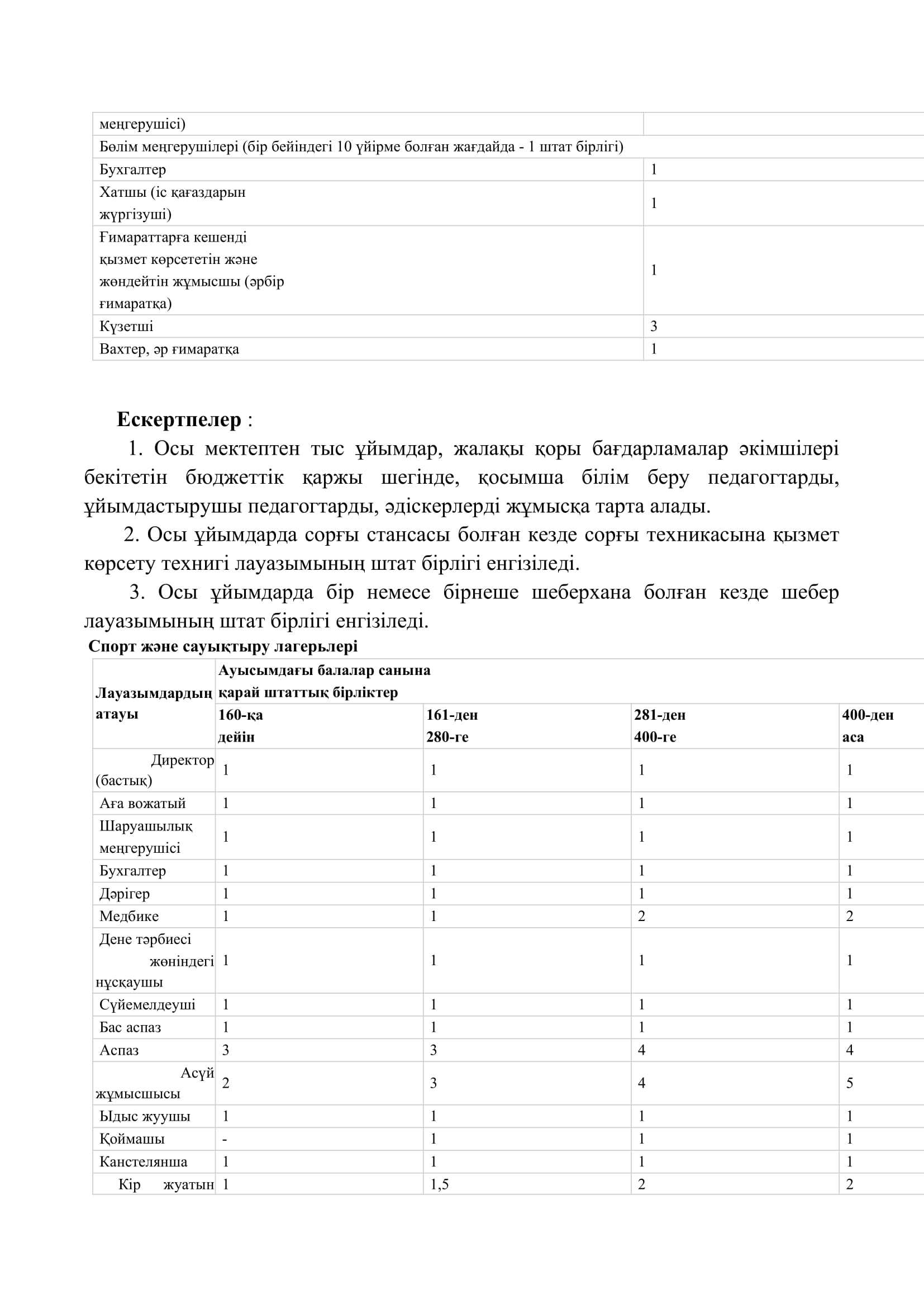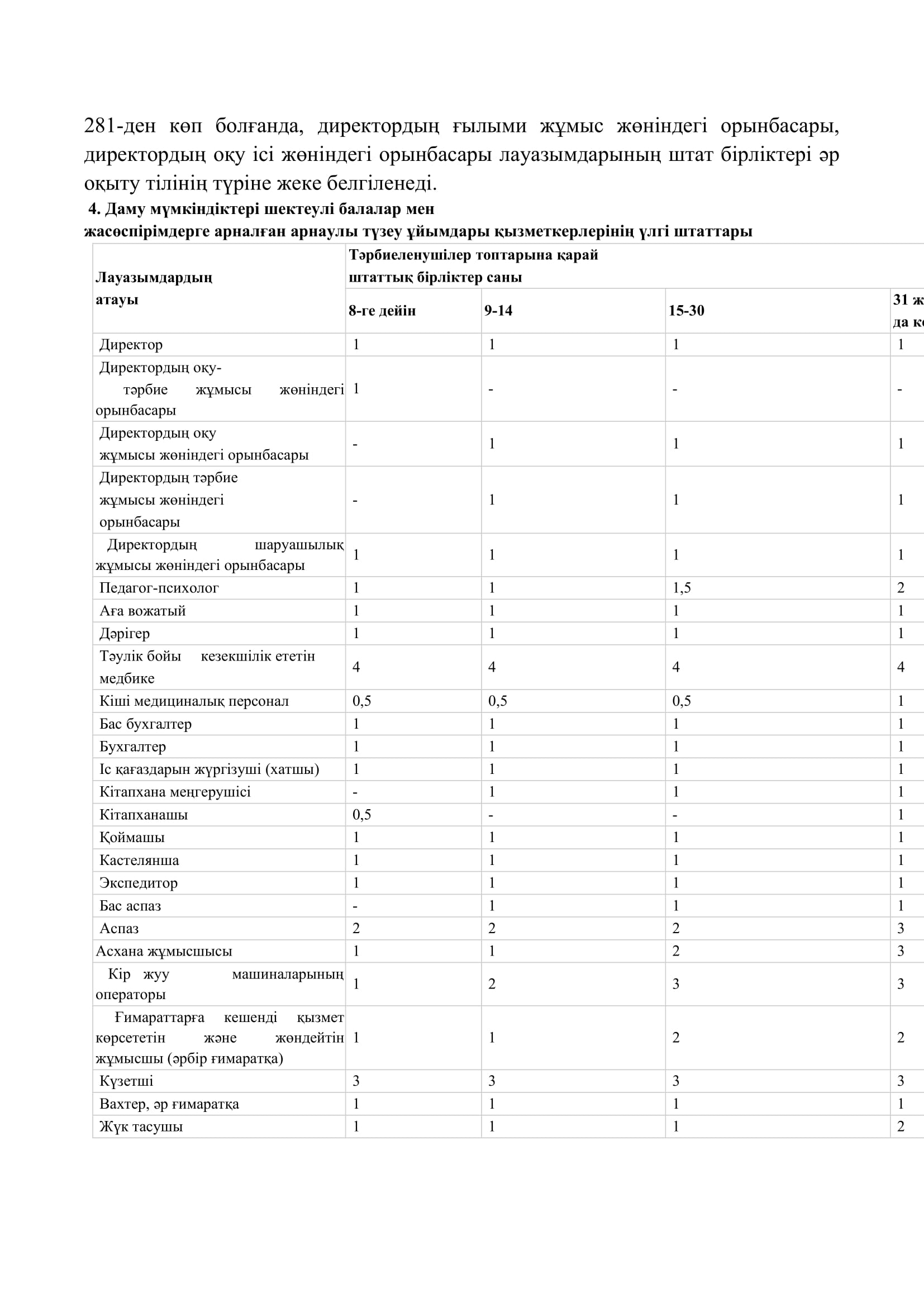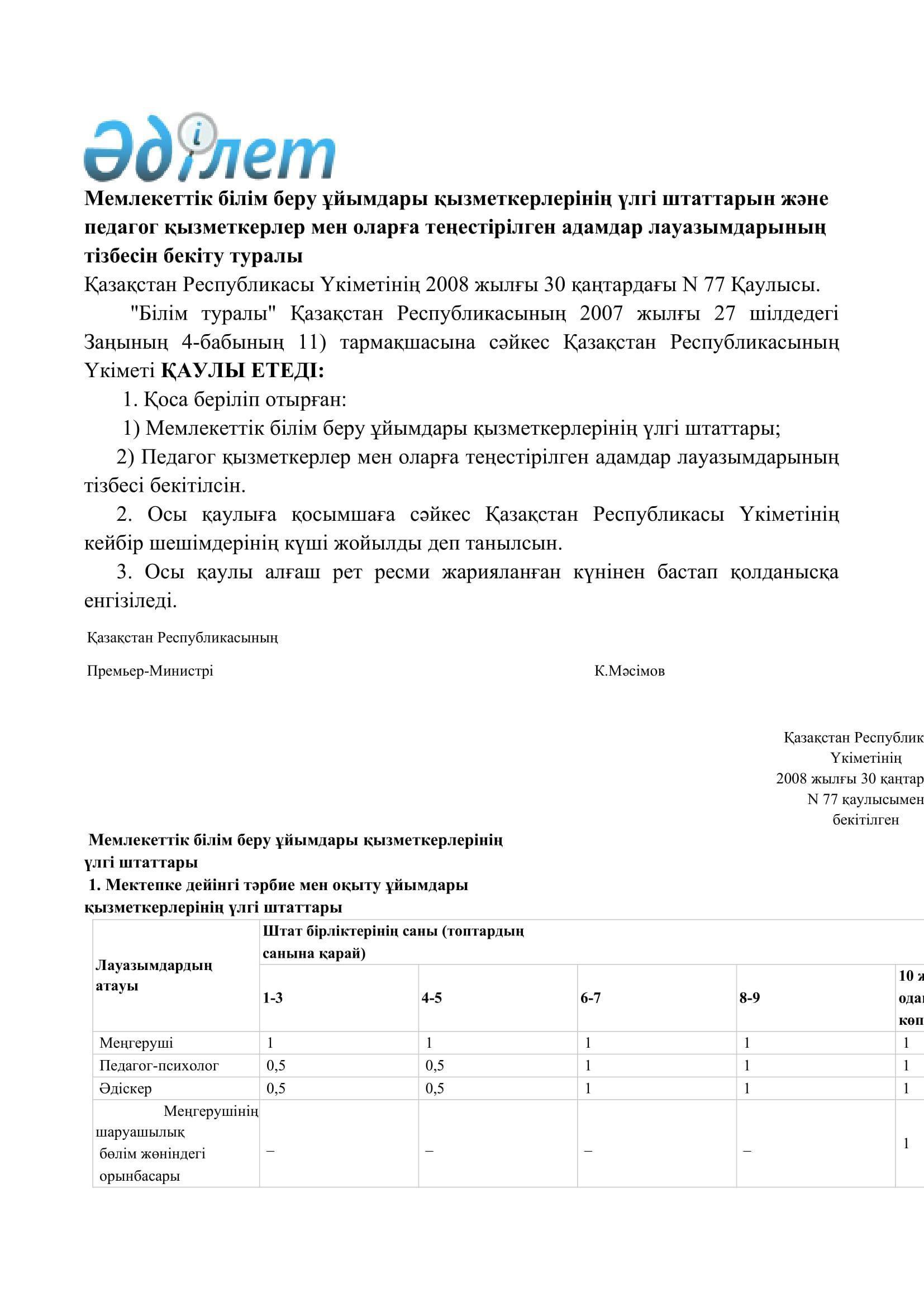 Мемлекеттік білім беру ұйымдары қызметкерлерінің үлгі штаттарын және педагог қызметкерлер мен оларға теңестірілген адамдар лауазымдарының тізбесін бекіту туралы » №110 мектеп-лицей