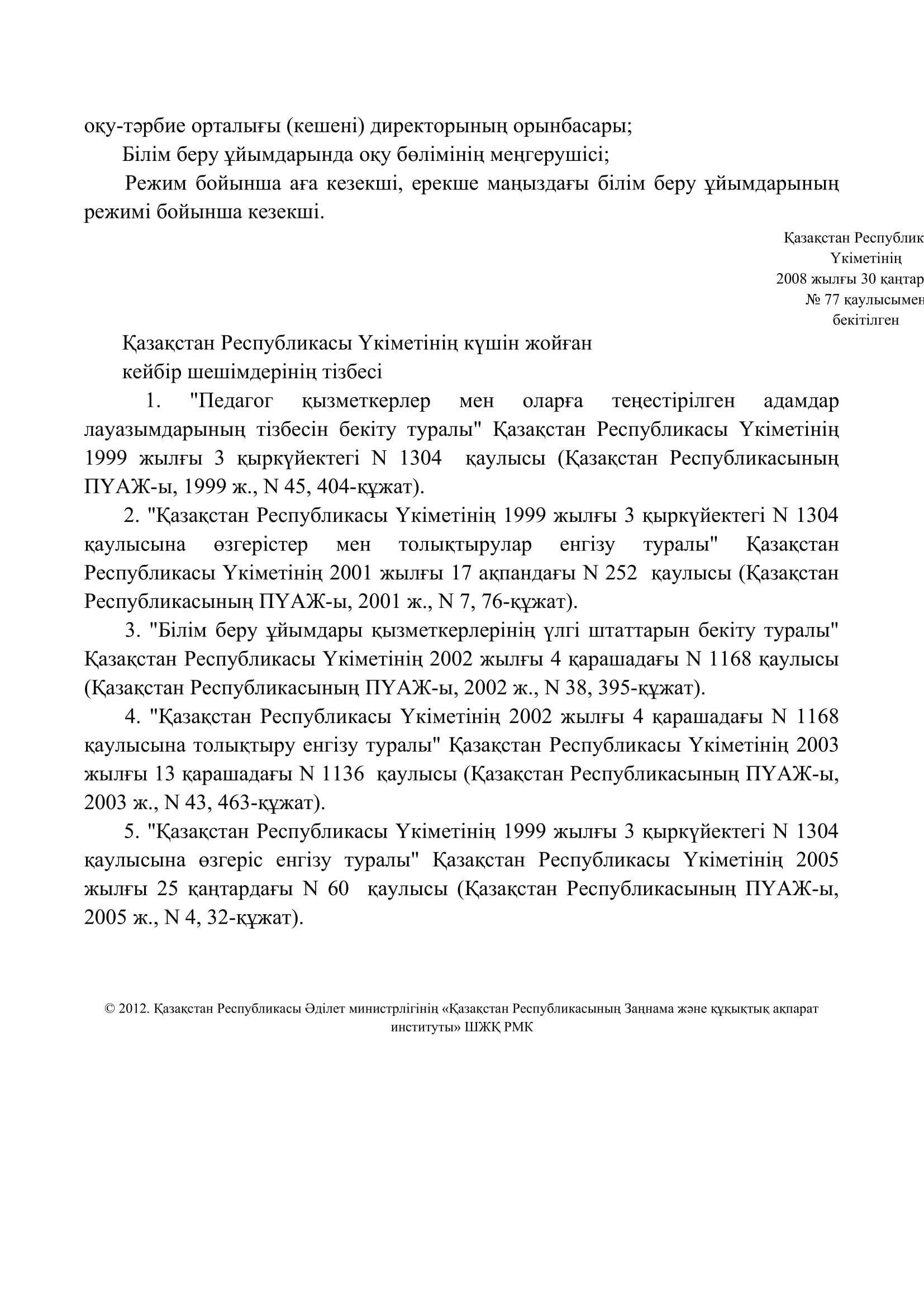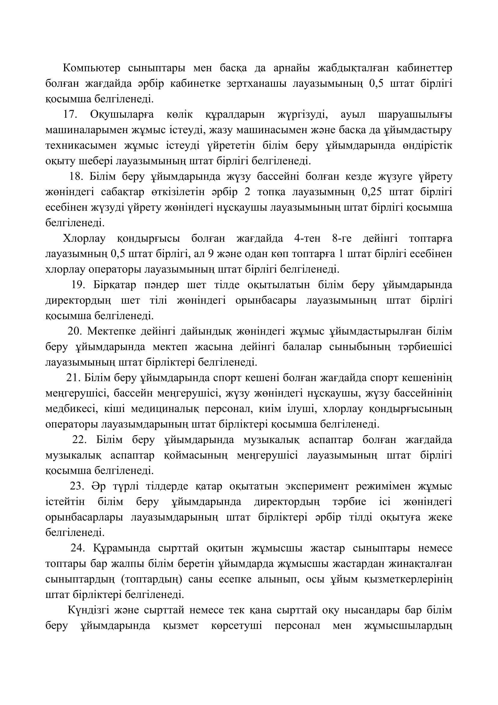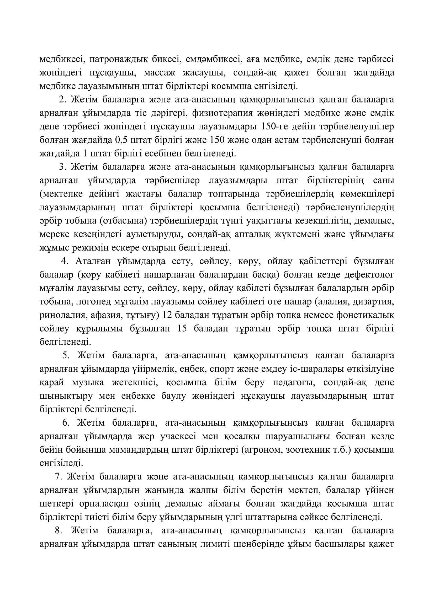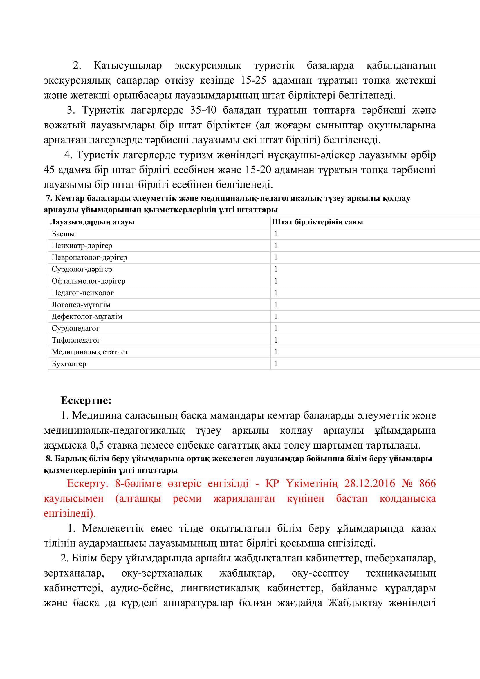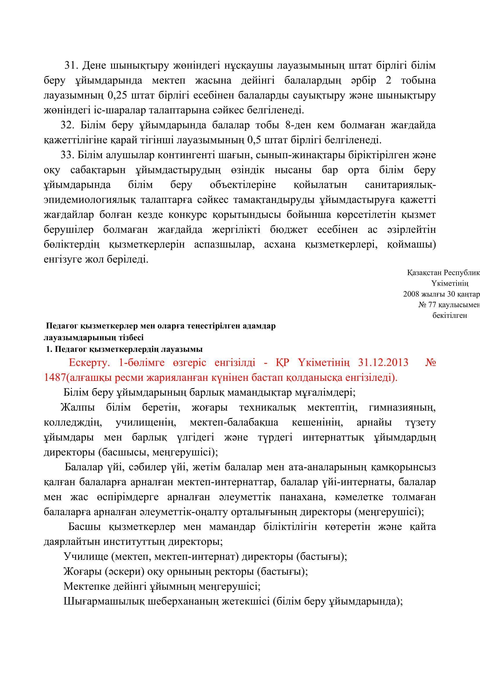 Мемлекеттік білім беру ұйымдары қызметкерлерінің үлгі штаттарын және педагог қызметкерлер мен оларға теңестірілген адамдар лауазымдарының тізбесін бекіту туралы » №110 мектеп-лицей