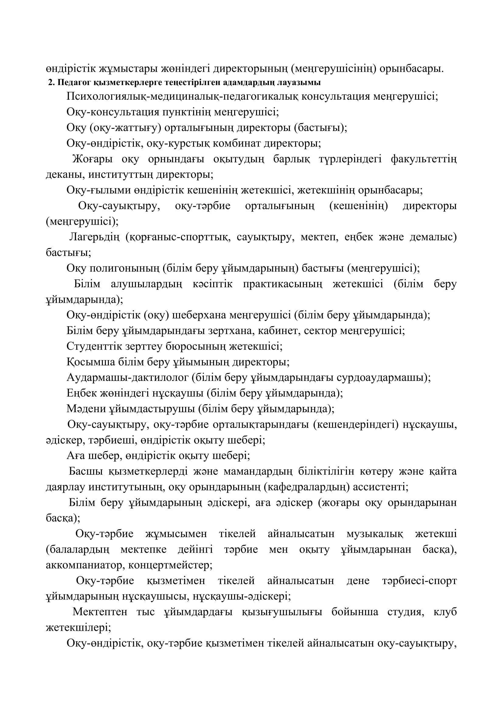 №110 мектеп-лицей » Біз туралы » Нормативтік құжаттар » Мемлекеттік білім беру ұйымдары қызметкерлерінің үлгі штаттарын және педагог қызметкерлер мен оларға теңестірілген адамдар лауазымдарының тізбесін бекіту туралы