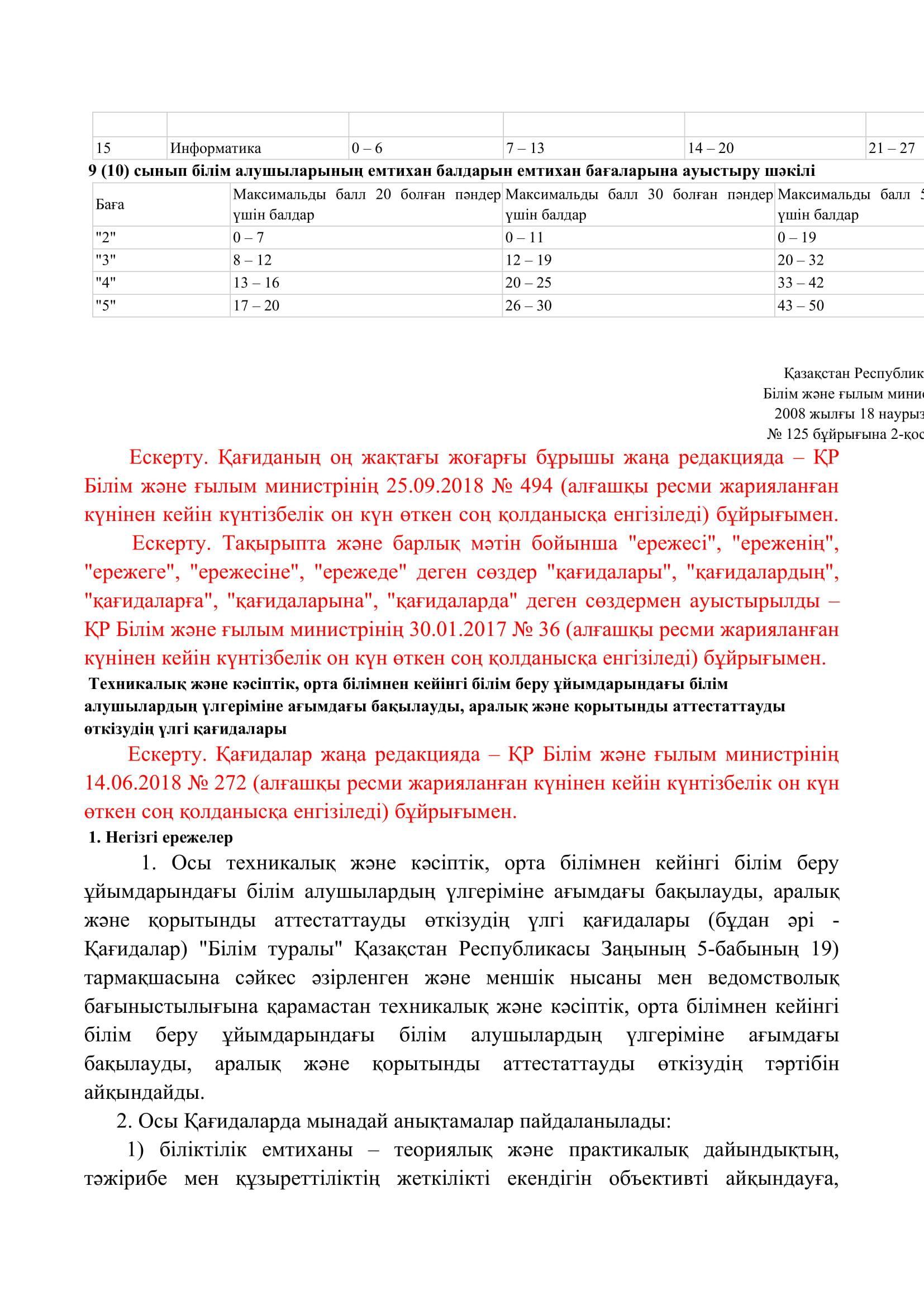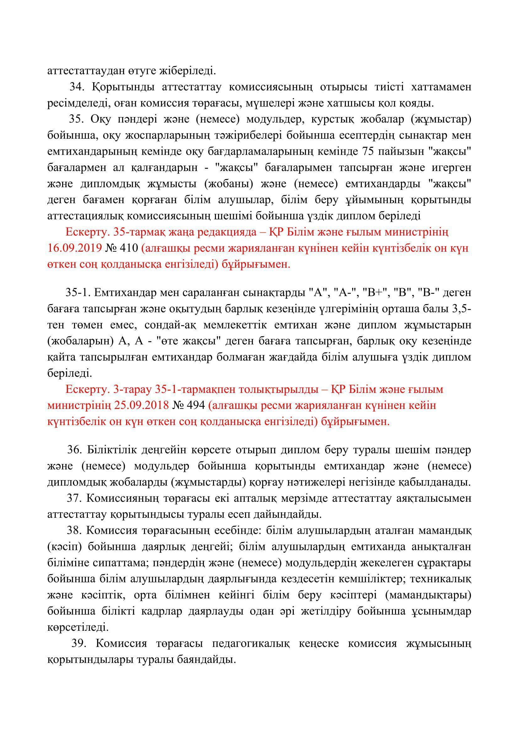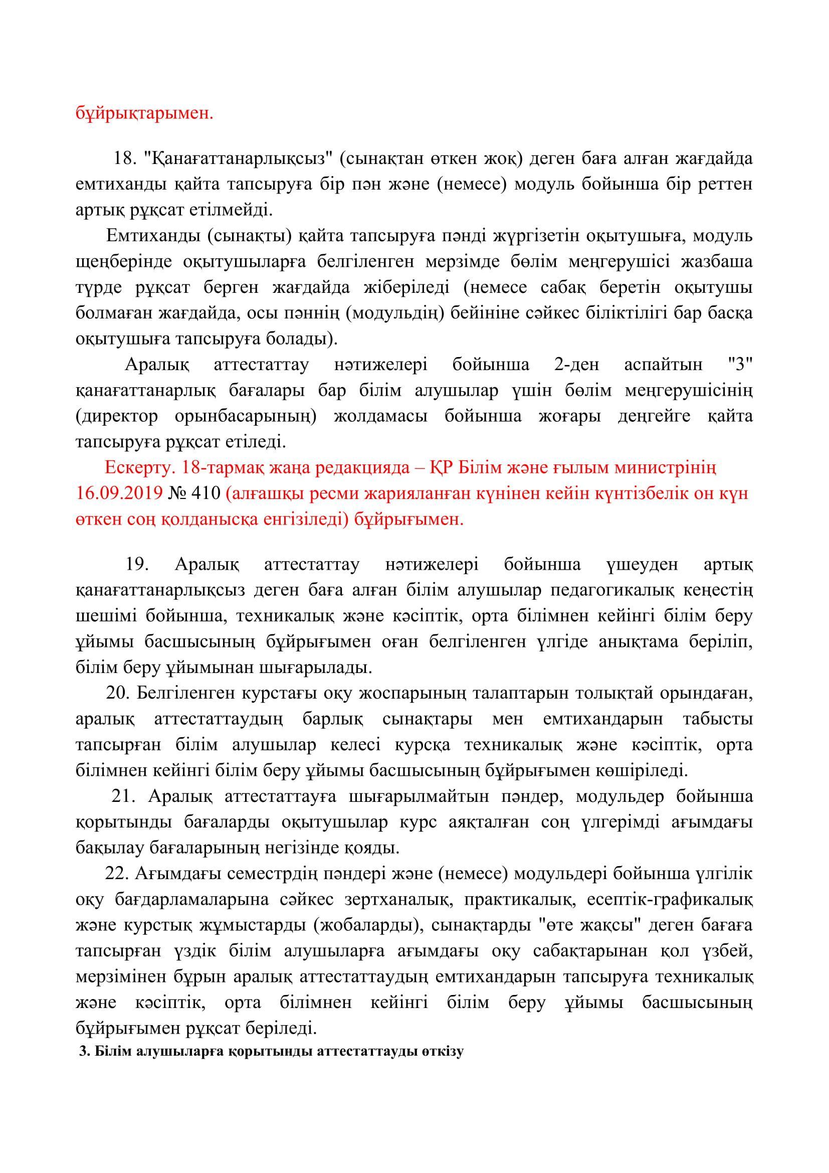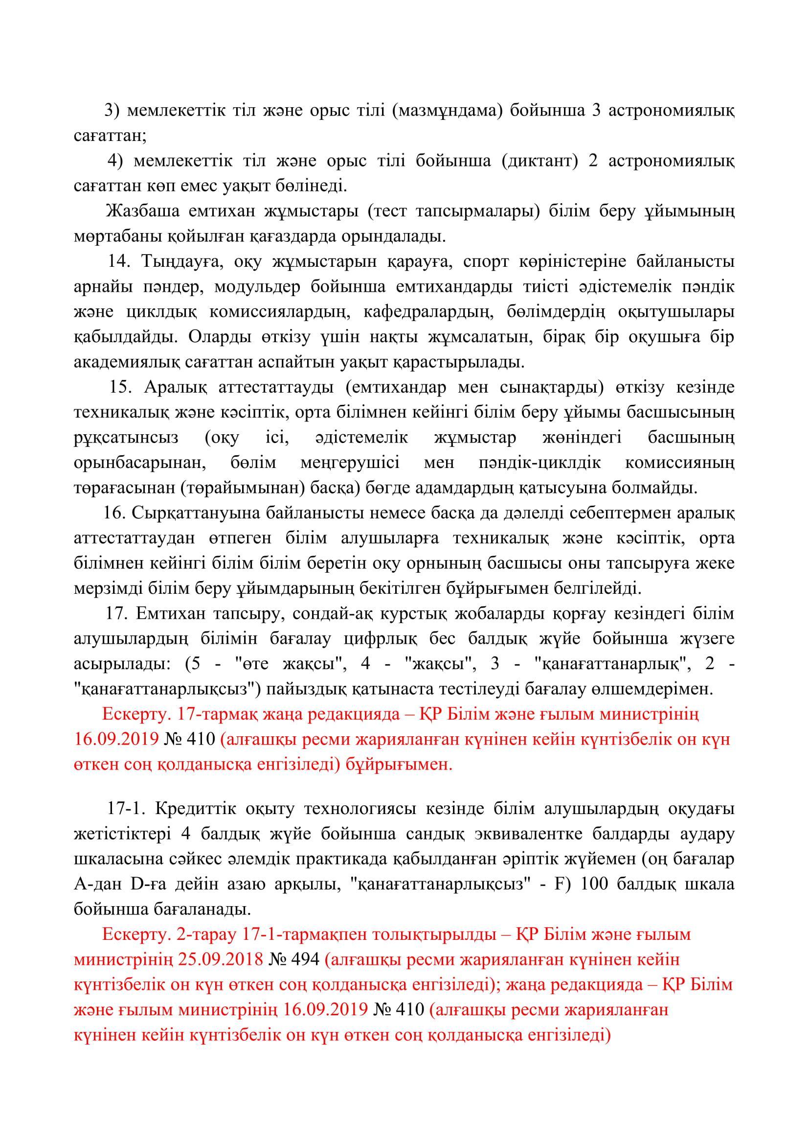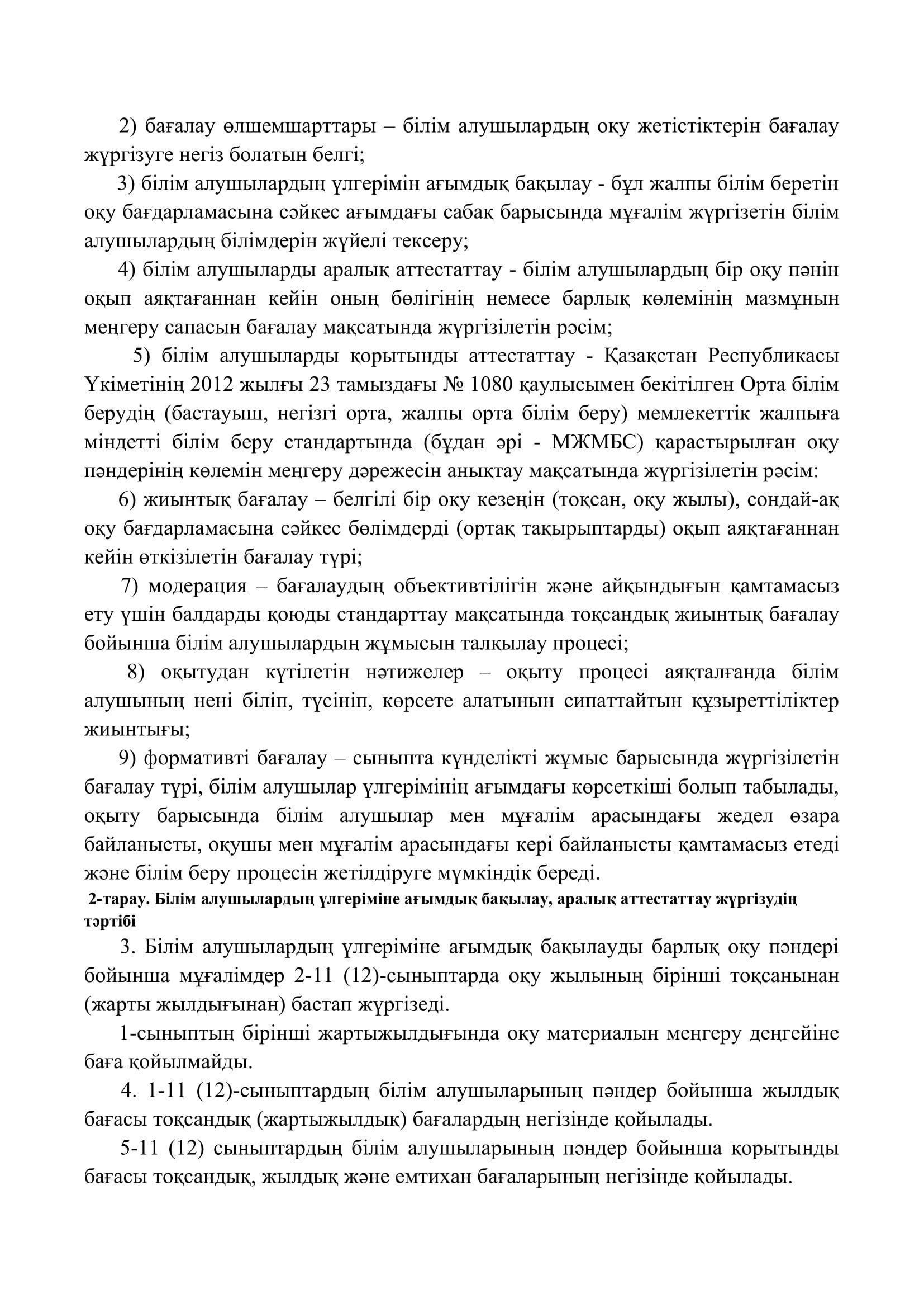 №110 мектеп-лицей » Біз туралы » Нормативтік құжаттар » Орта, техникалық және кәсіптік, орта білімнен кейінгі білім беру ұйымдары үшін білім алушылардың үлгеріміне ағымдағы бақылауды, оларды аралық және қорытынды аттестаттауды өткізудің үлгілік қағидаларын бекіту туралы