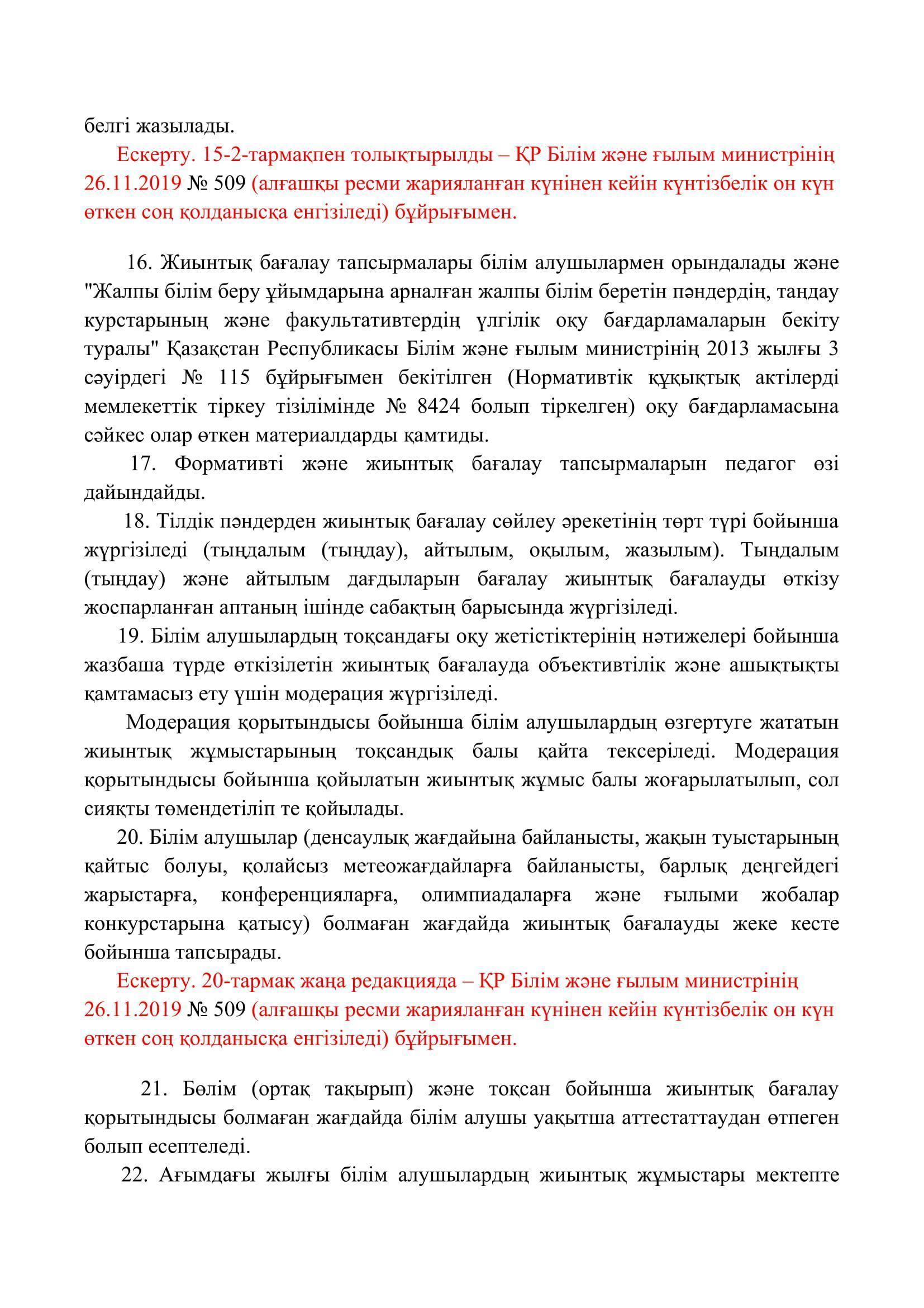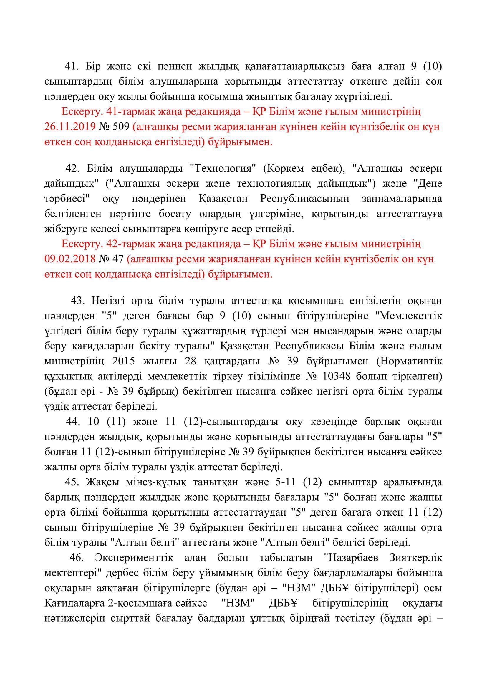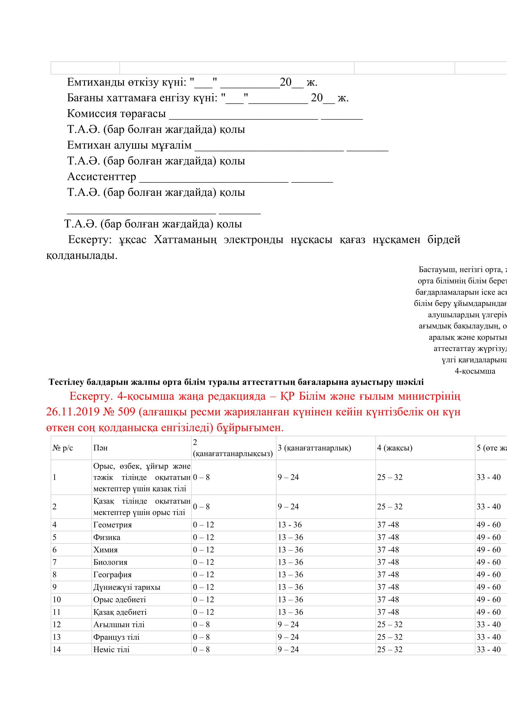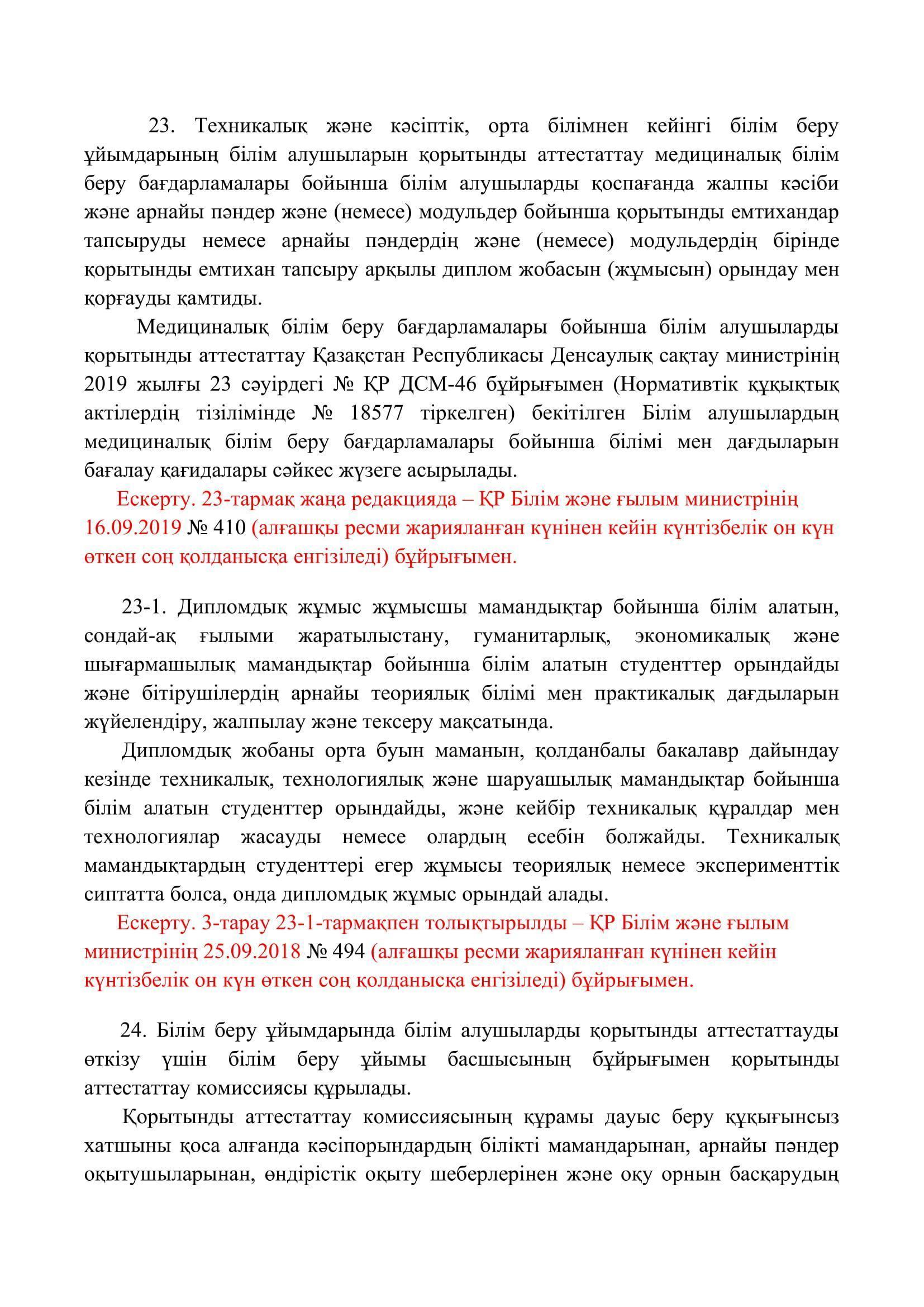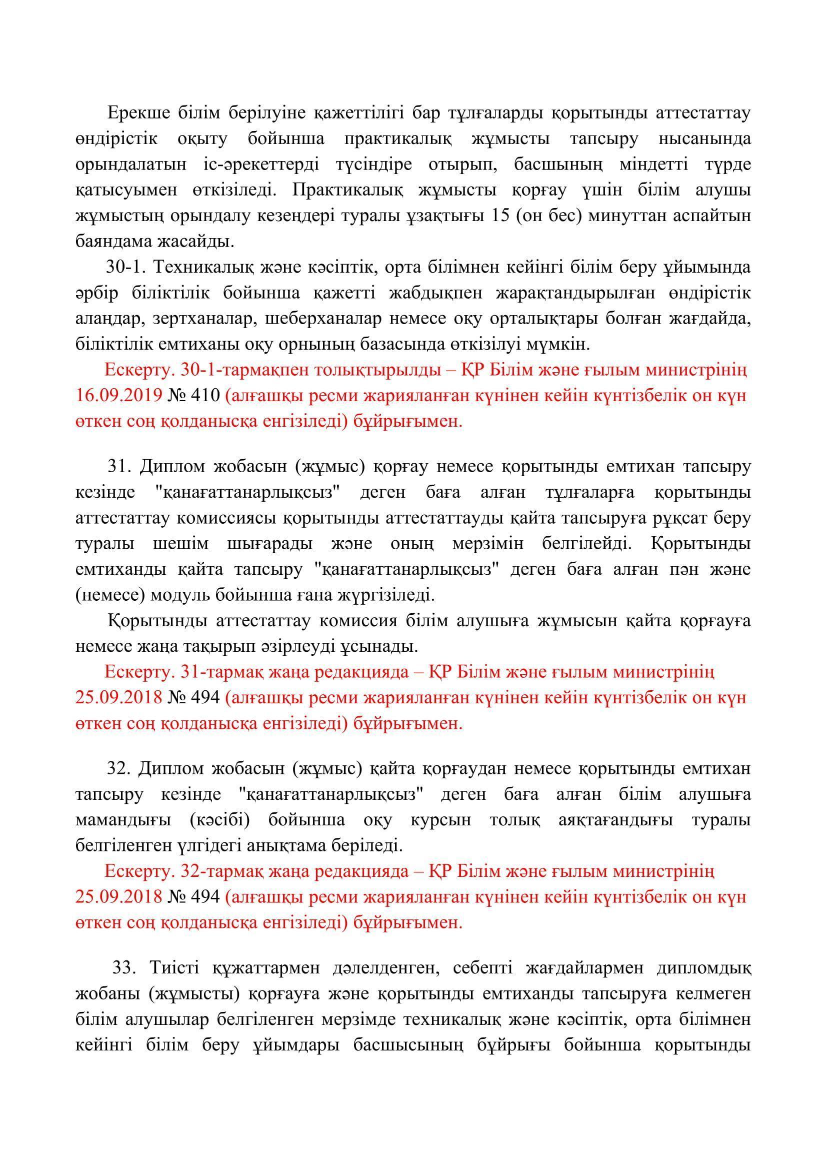 №110 мектеп-лицей » Біз туралы » Нормативтік құжаттар » Орта, техникалық және кәсіптік, орта білімнен кейінгі білім беру ұйымдары үшін білім алушылардың үлгеріміне ағымдағы бақылауды, оларды аралық және қорытынды аттестаттауды өткізудің үлгілік қағидаларын бекіту туралы