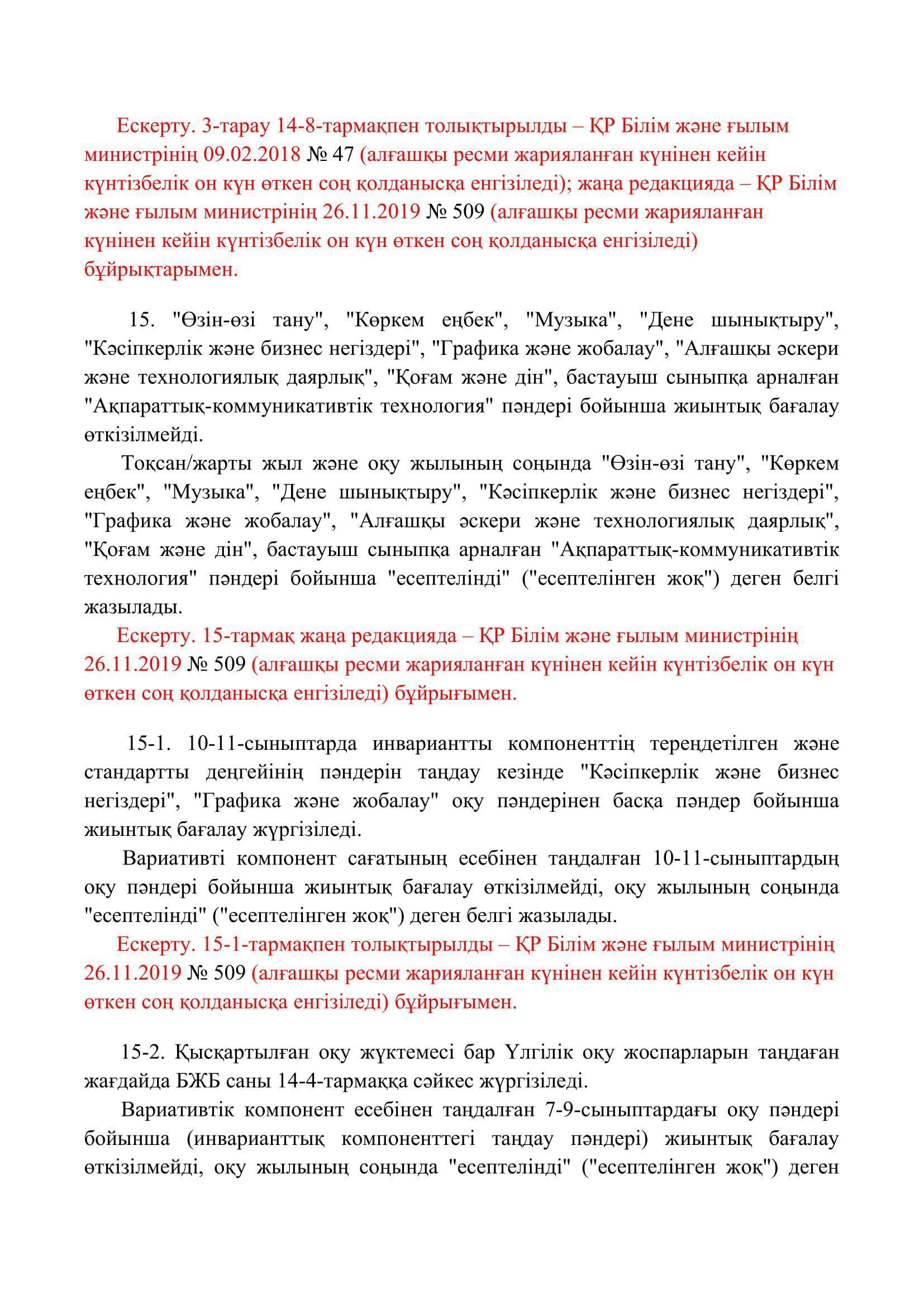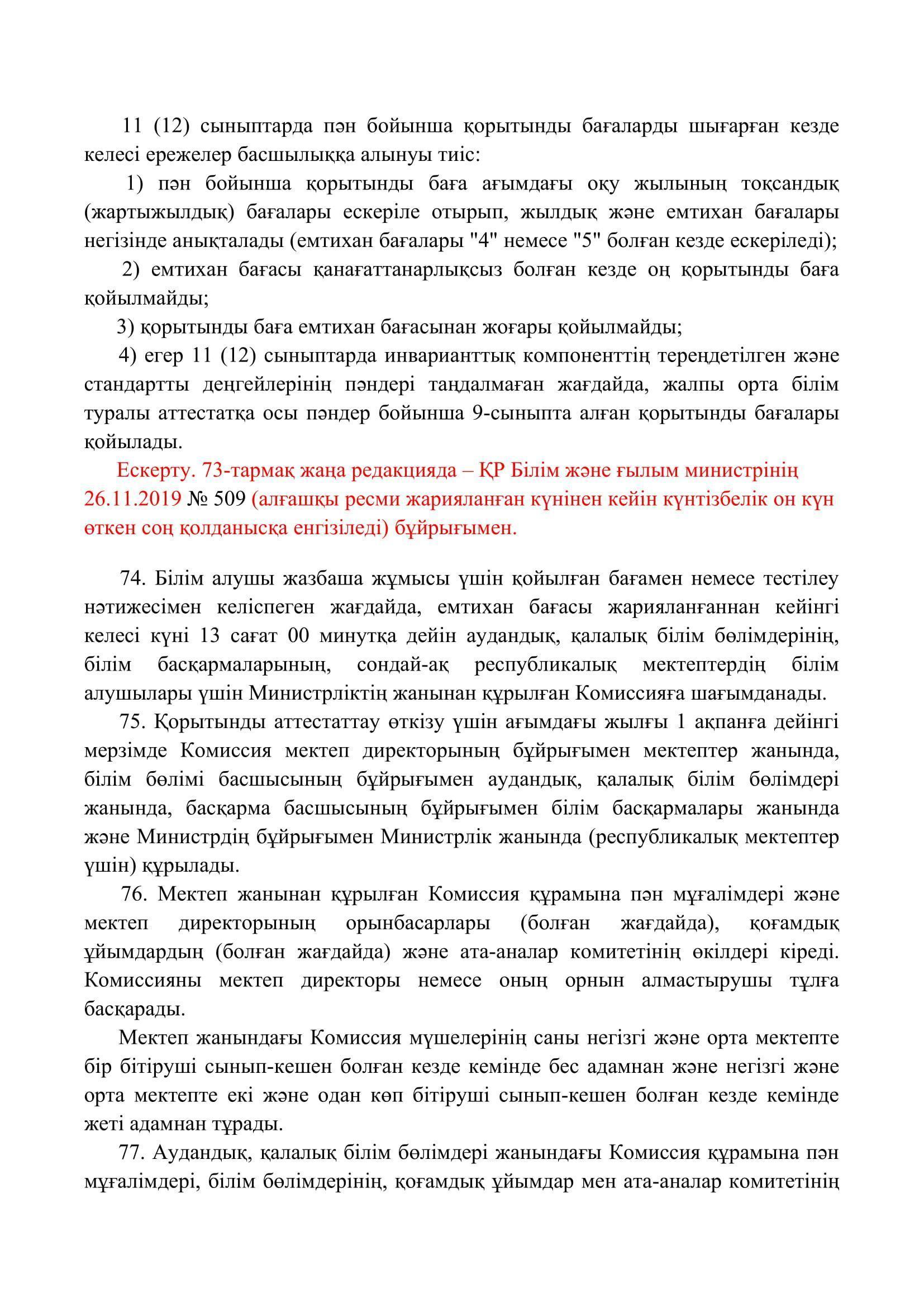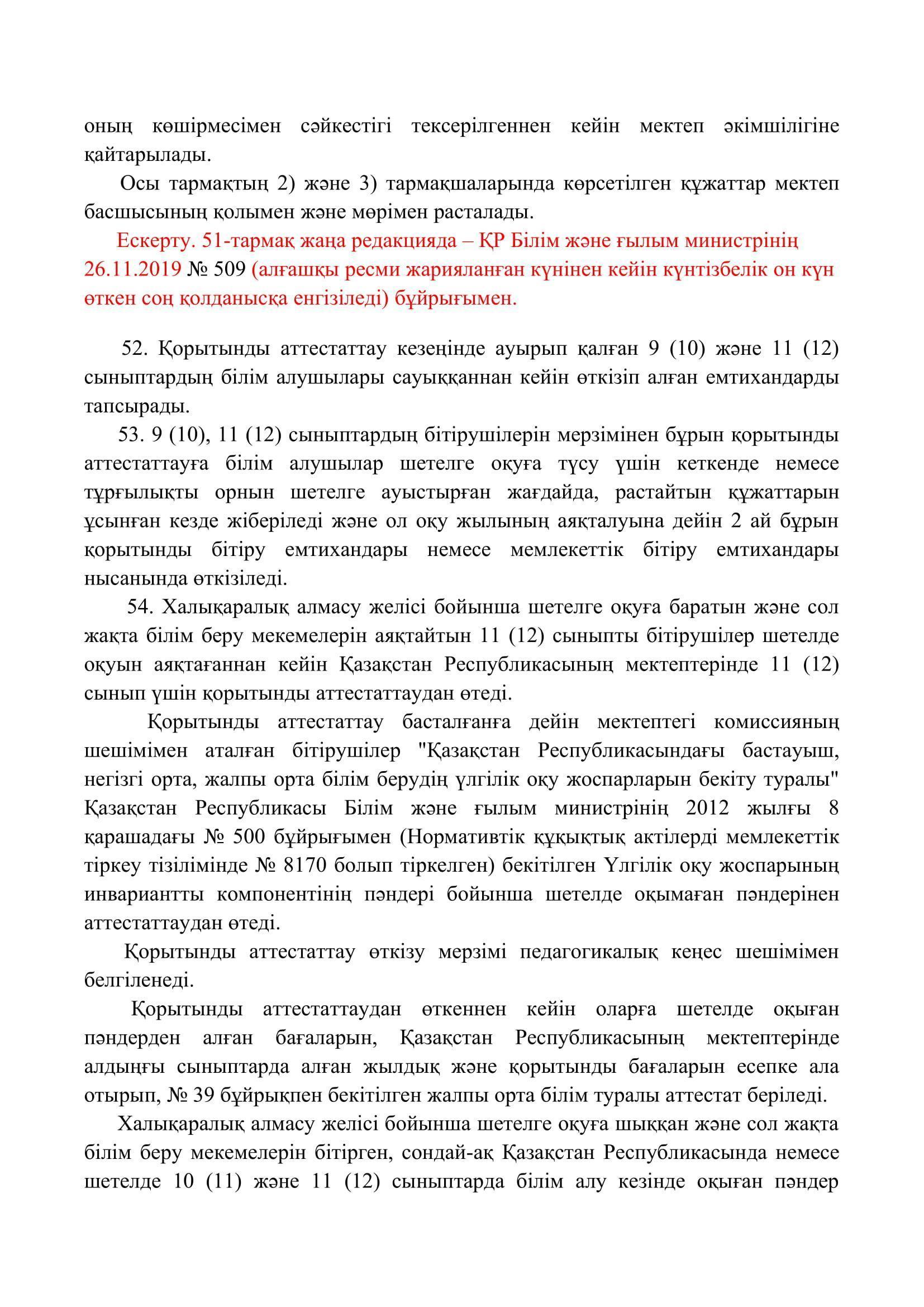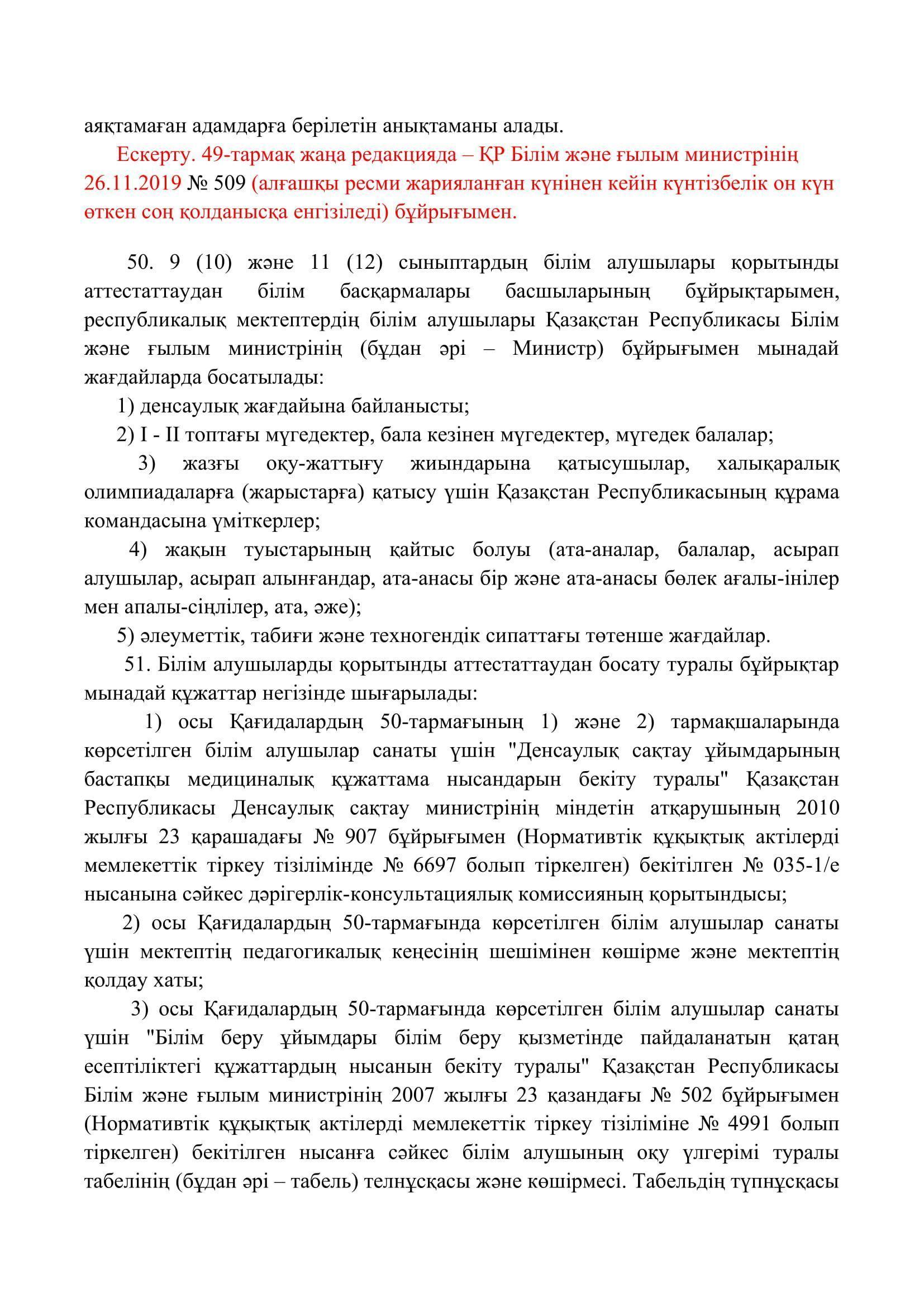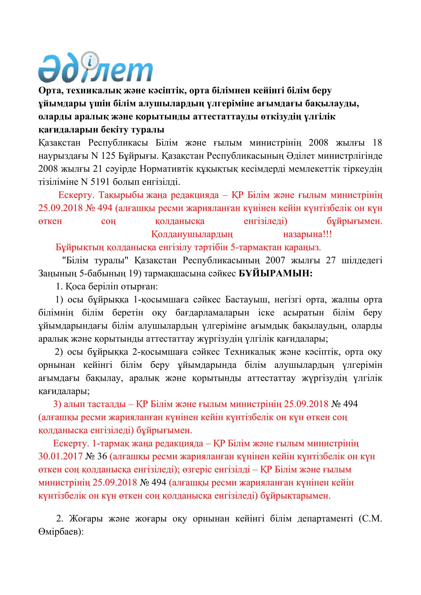 №110 мектеп-лицей » Біз туралы » Нормативтік құжаттар » Орта, техникалық және кәсіптік, орта білімнен кейінгі білім беру ұйымдары үшін білім алушылардың үлгеріміне ағымдағы бақылауды, оларды аралық және қорытынды аттестаттауды өткізудің үлгілік қағидаларын бекіту туралы