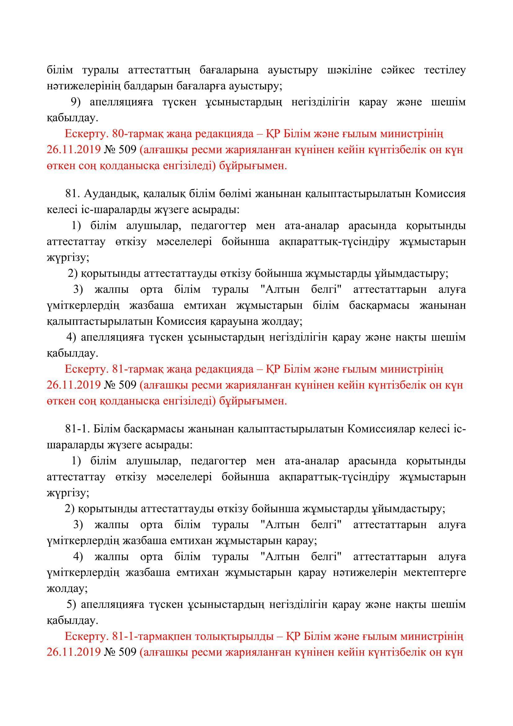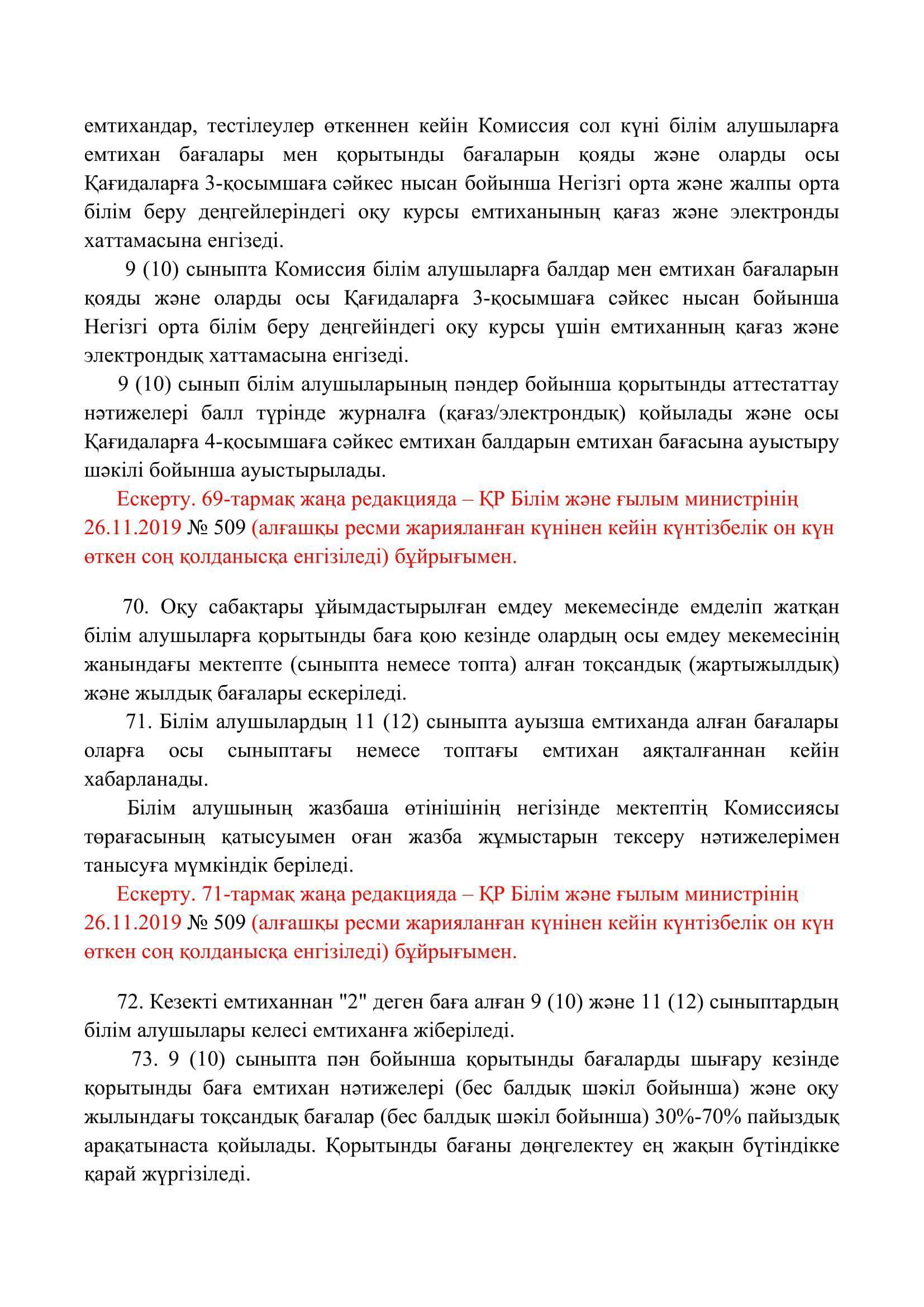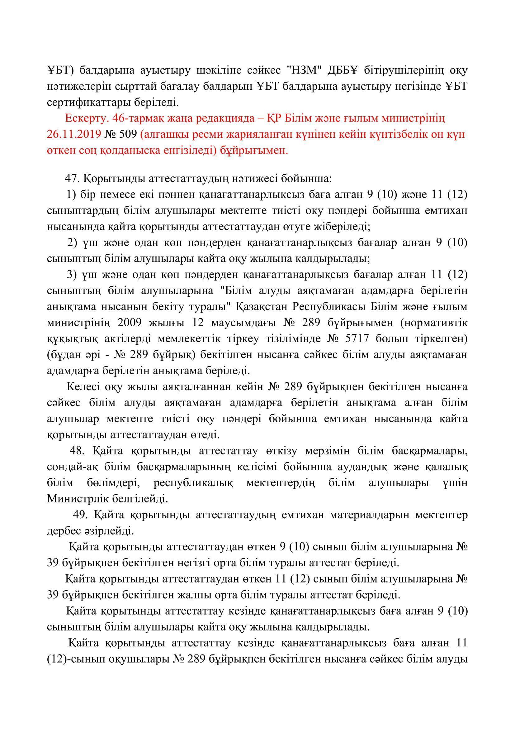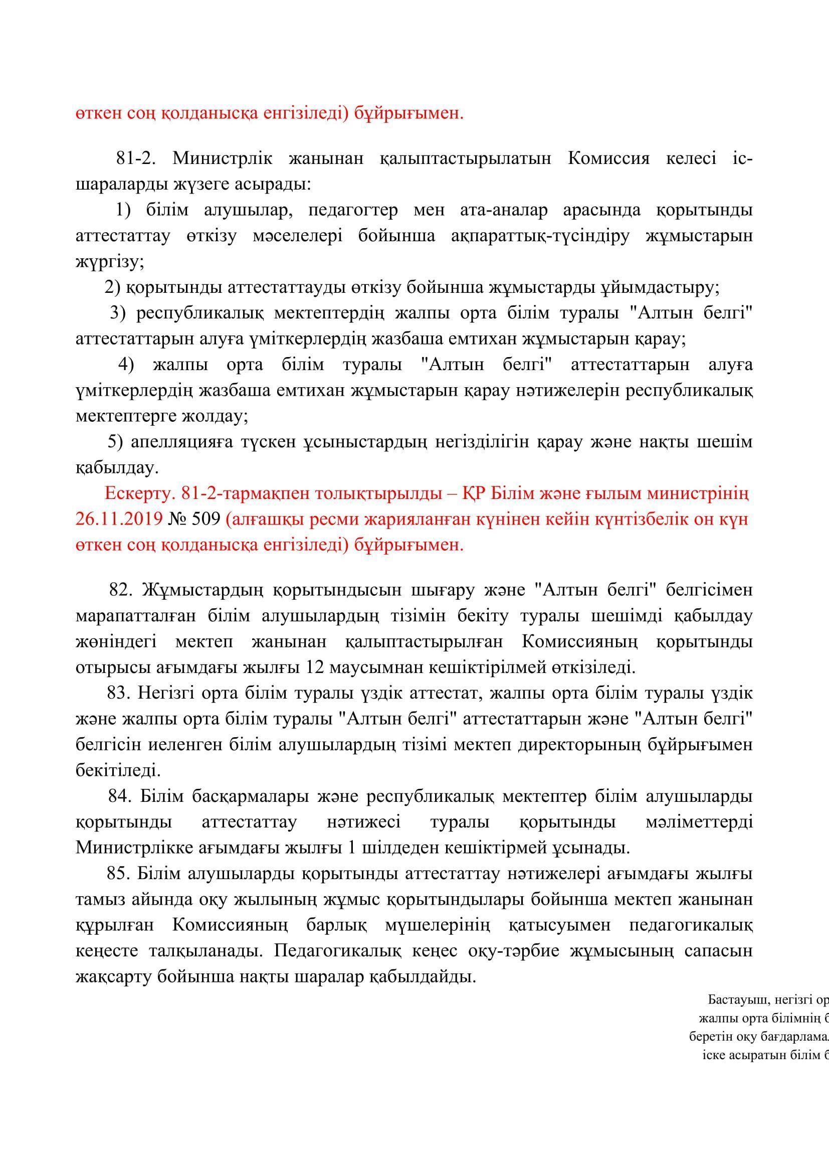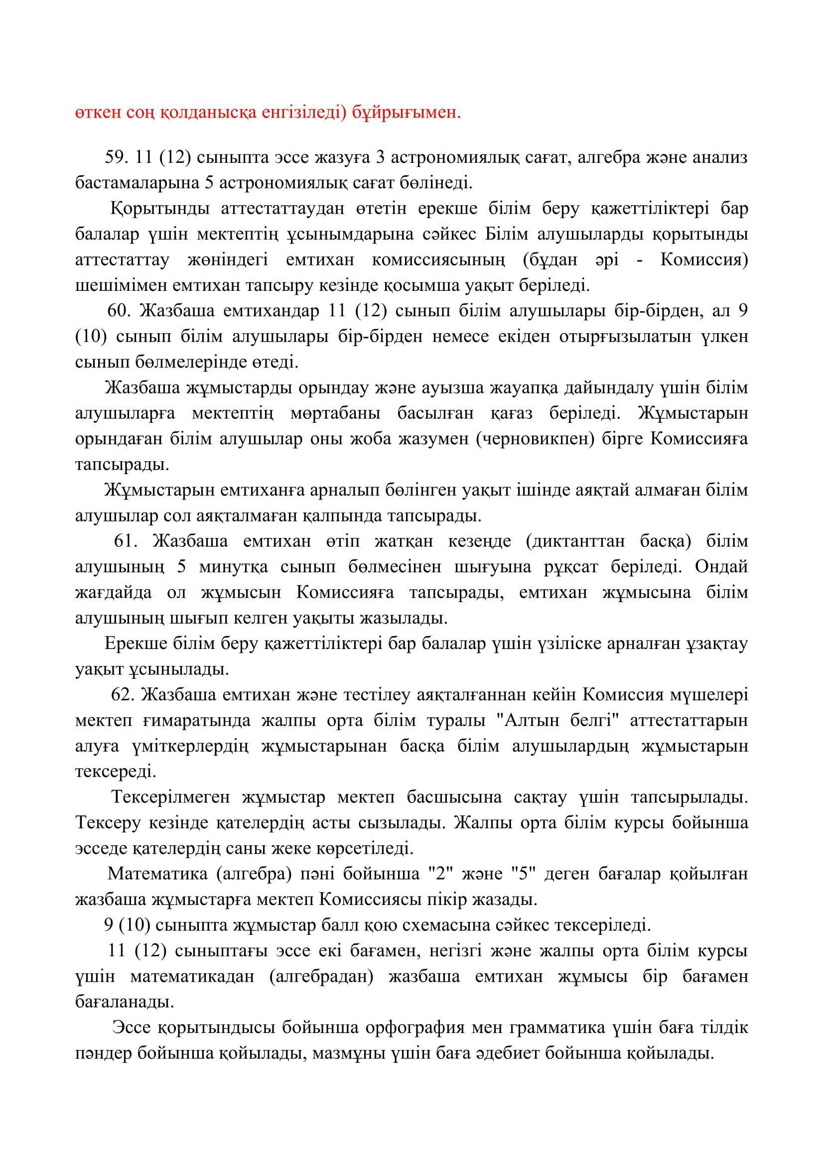 №110 мектеп-лицей » Біз туралы » Нормативтік құжаттар » Орта, техникалық және кәсіптік, орта білімнен кейінгі білім беру ұйымдары үшін білім алушылардың үлгеріміне ағымдағы бақылауды, оларды аралық және қорытынды аттестаттауды өткізудің үлгілік қағидаларын бекіту туралы