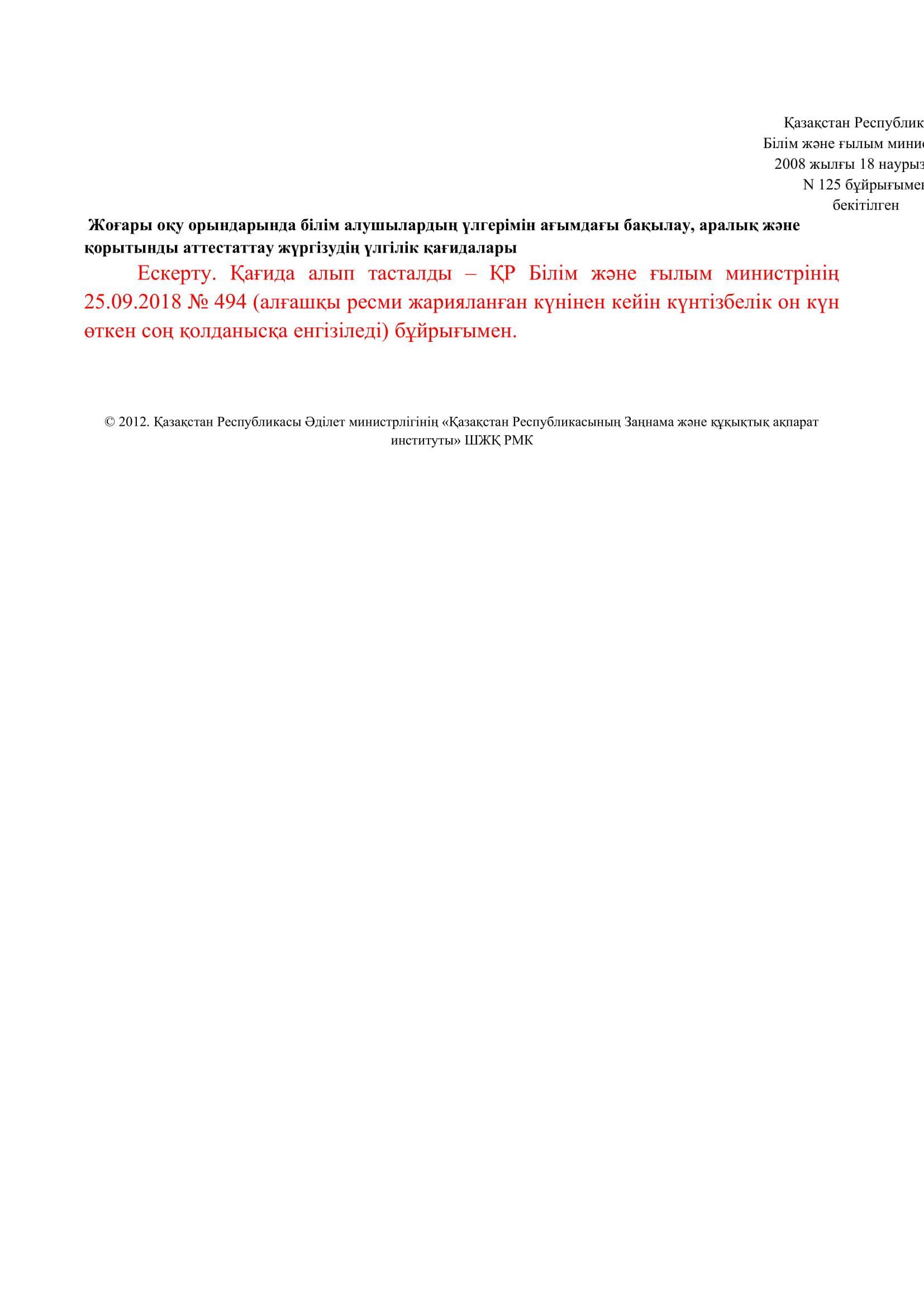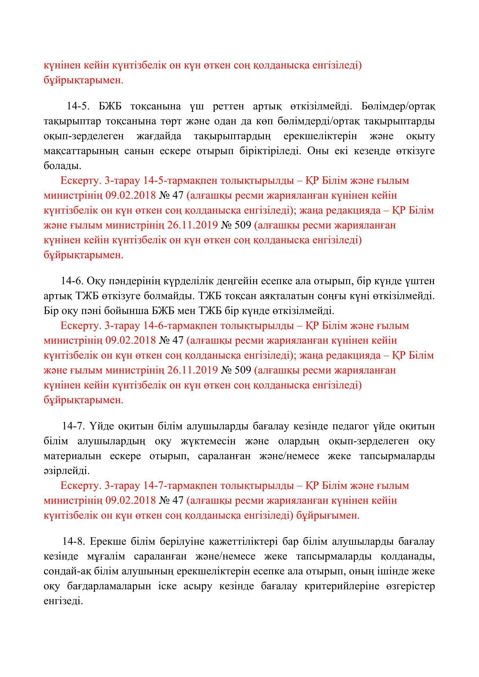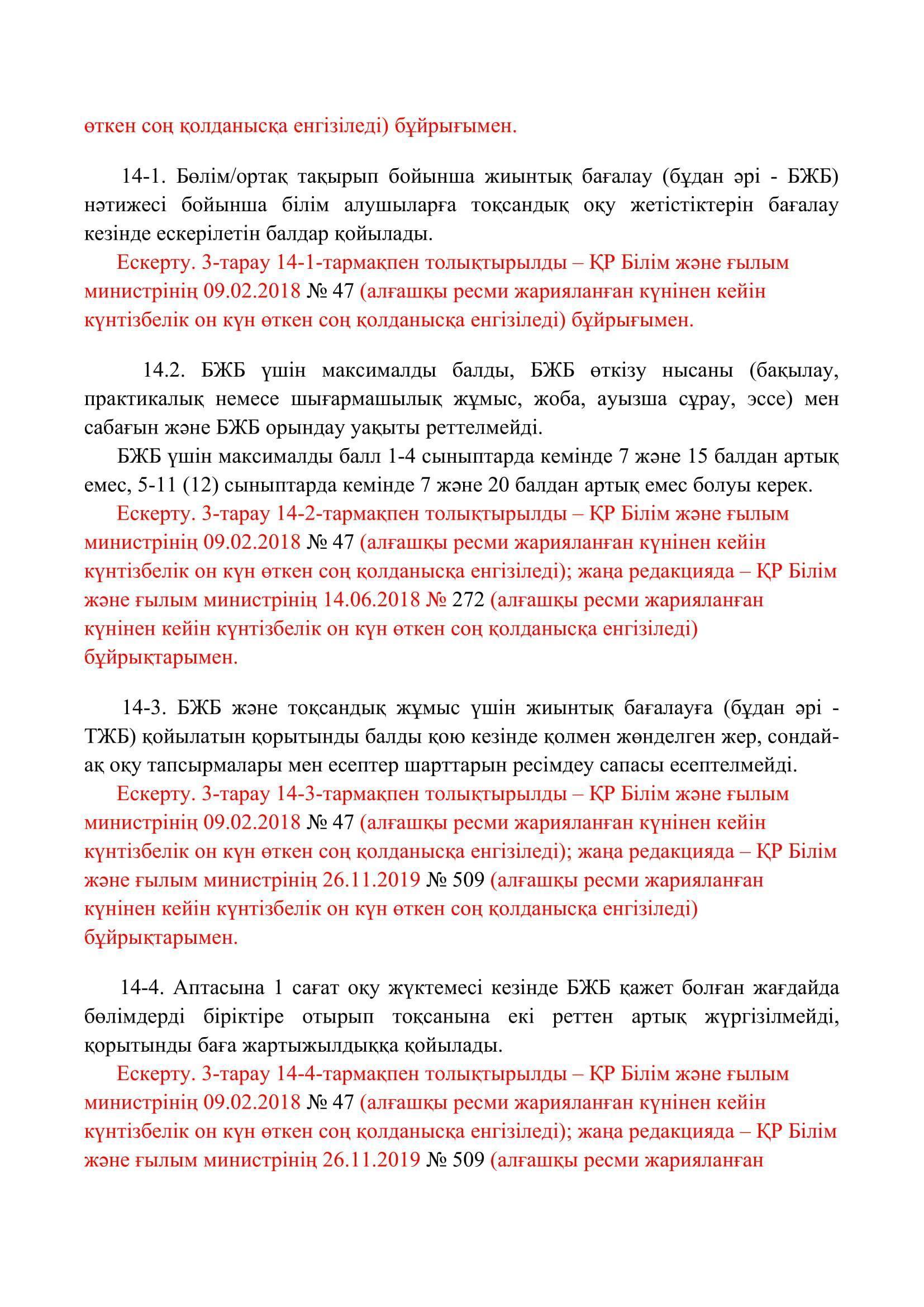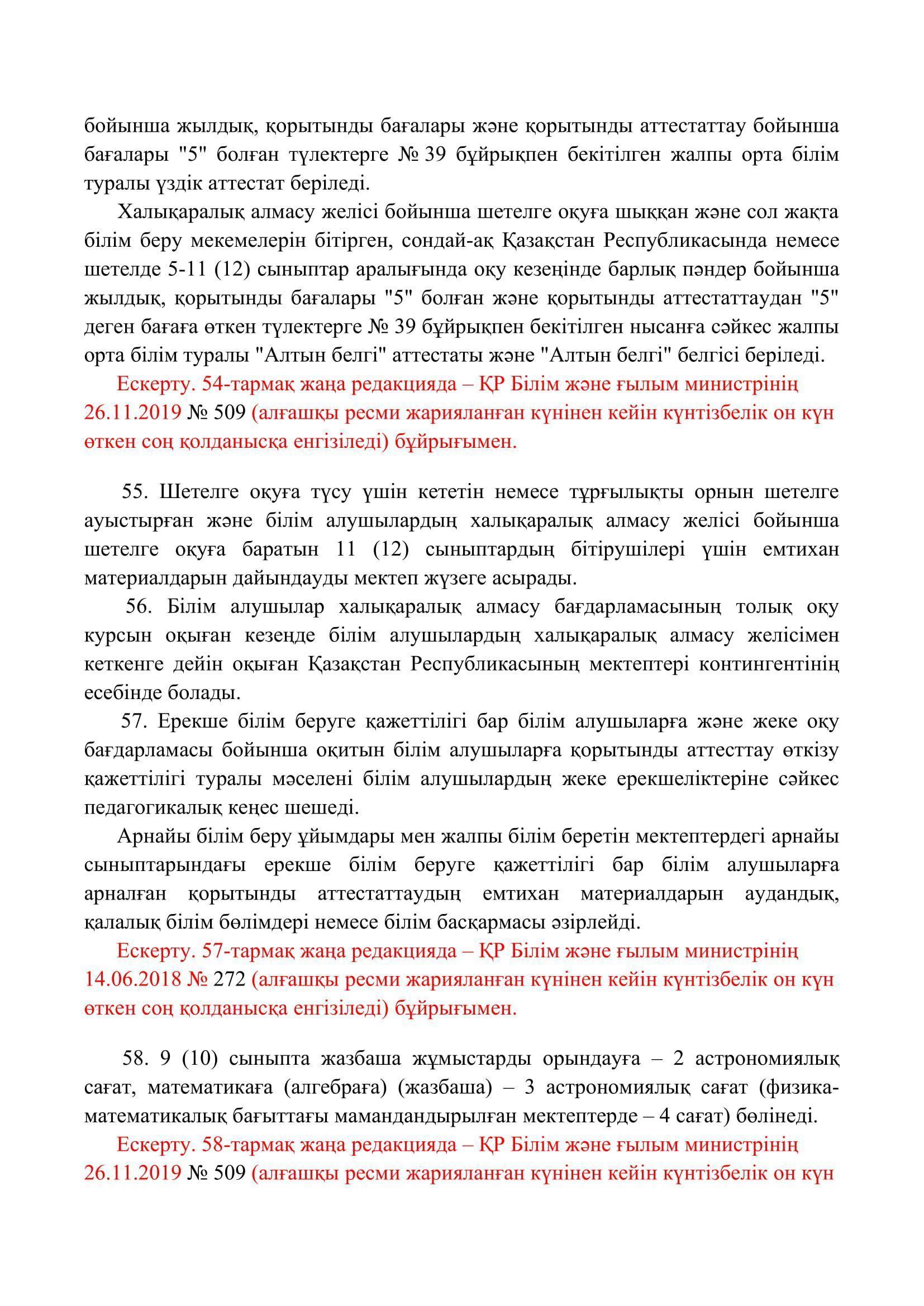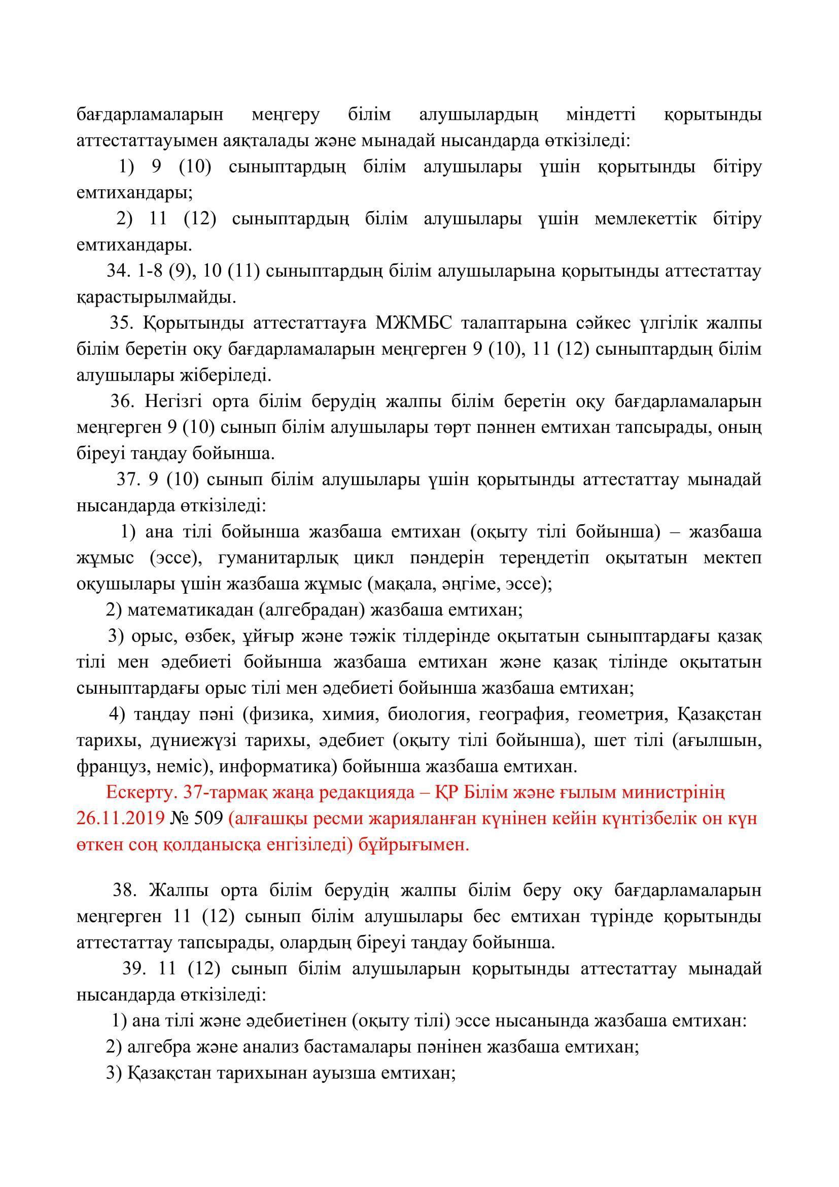 №110 мектеп-лицей » Біз туралы » Нормативтік құжаттар » Орта, техникалық және кәсіптік, орта білімнен кейінгі білім беру ұйымдары үшін білім алушылардың үлгеріміне ағымдағы бақылауды, оларды аралық және қорытынды аттестаттауды өткізудің үлгілік қағидаларын бекіту туралы