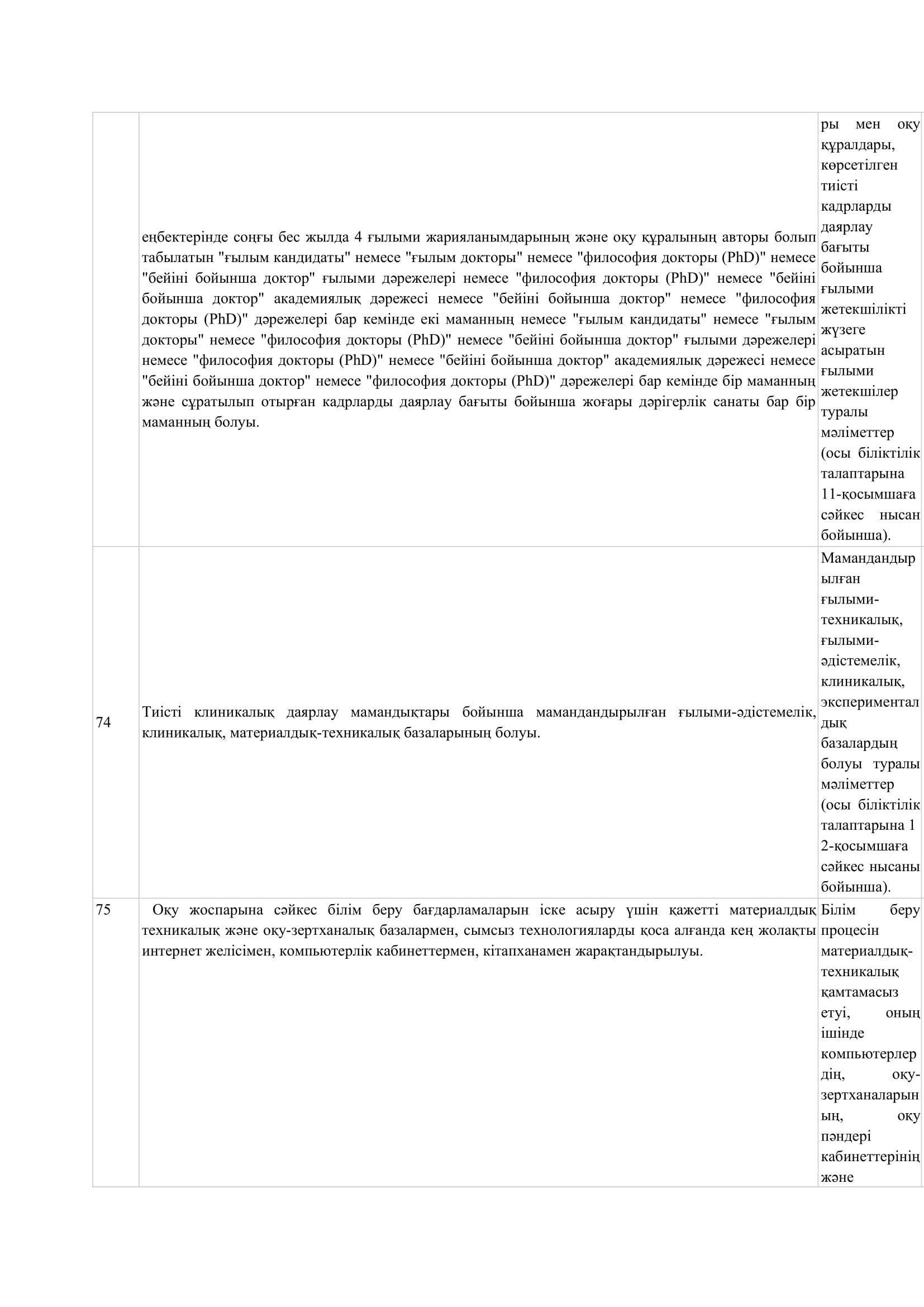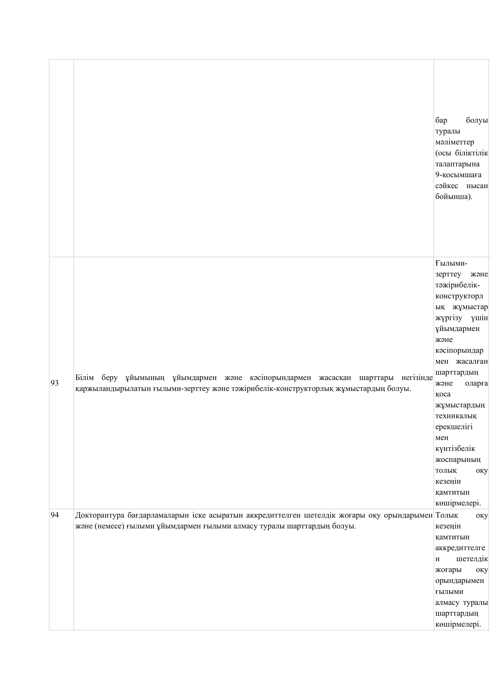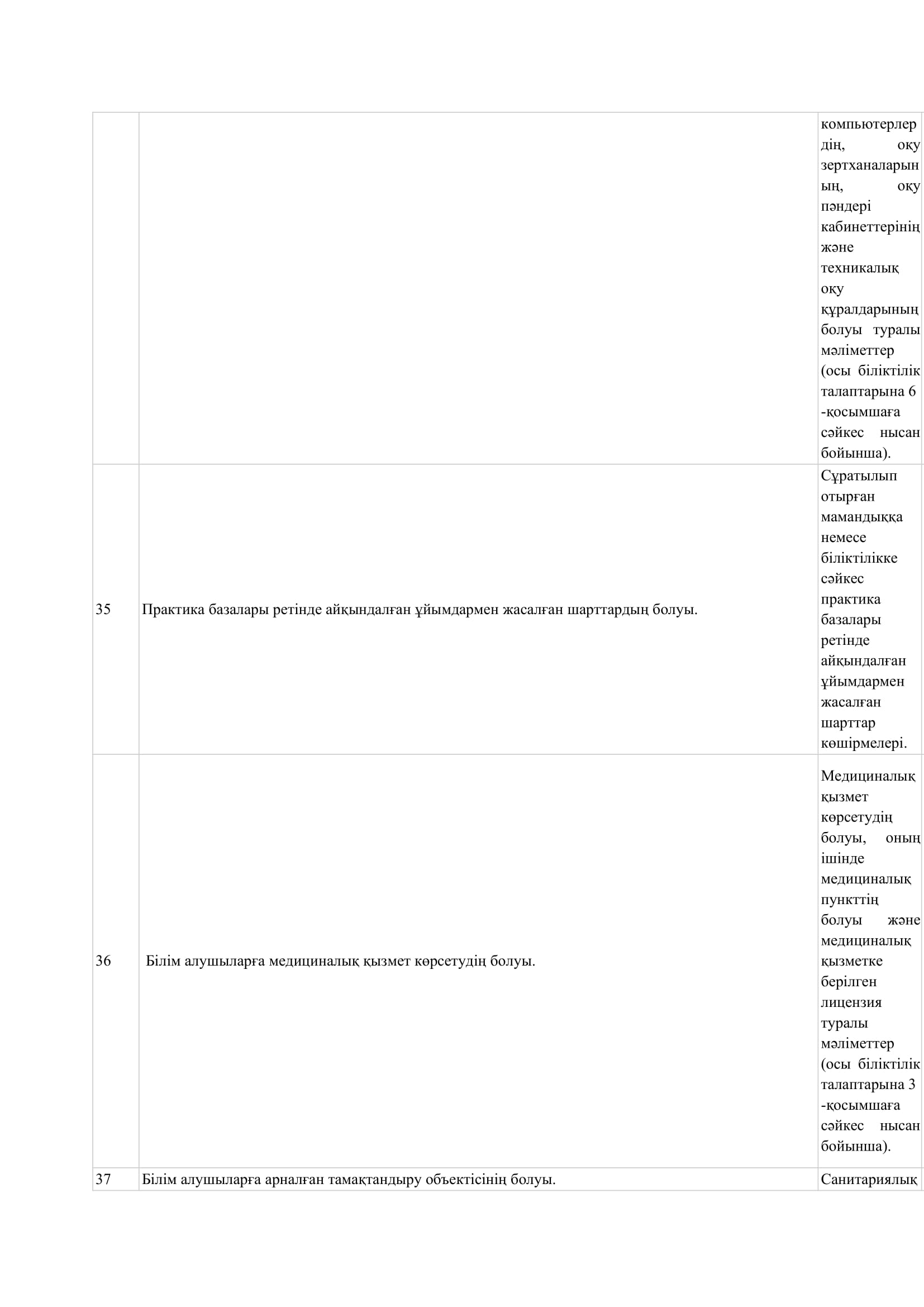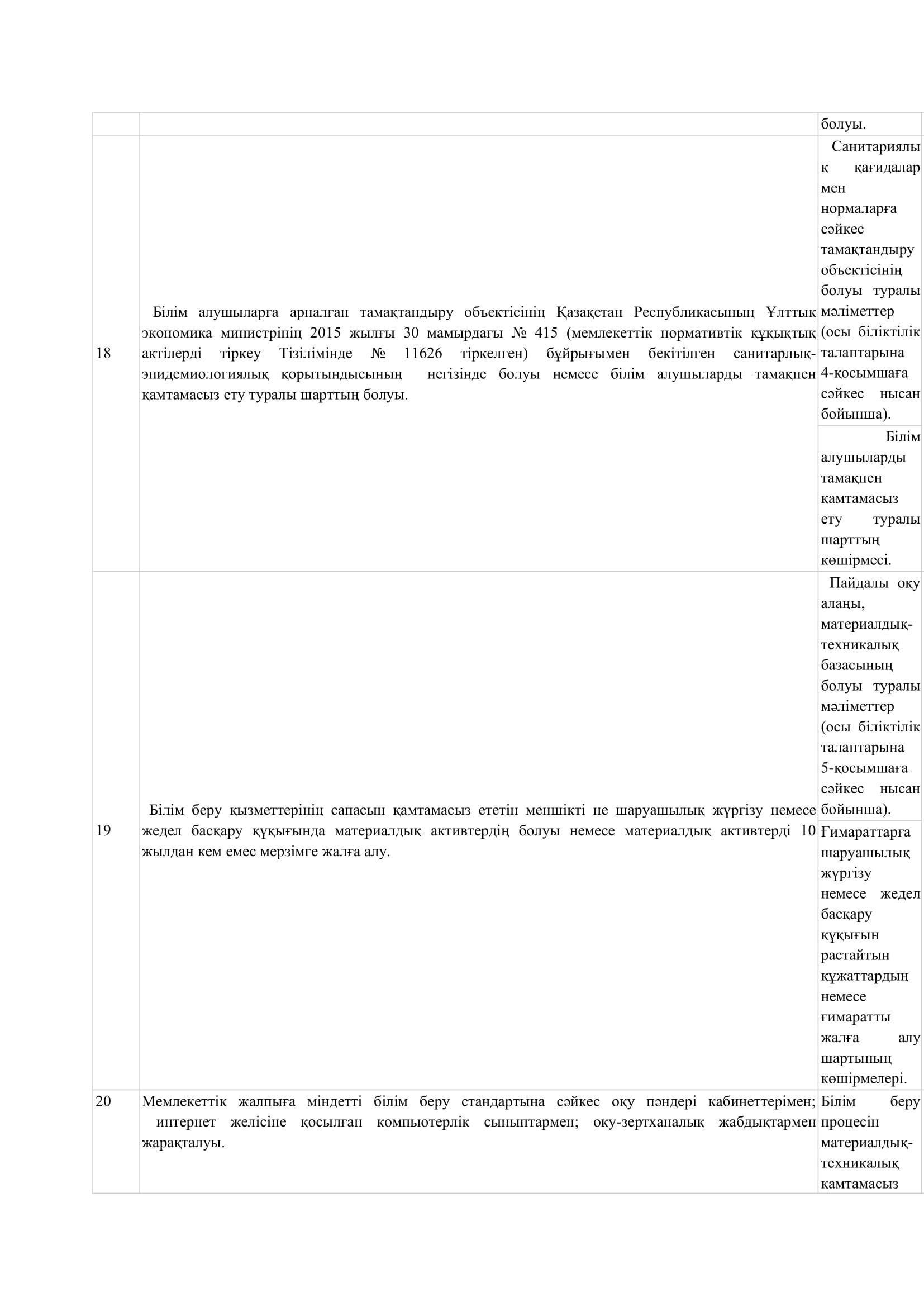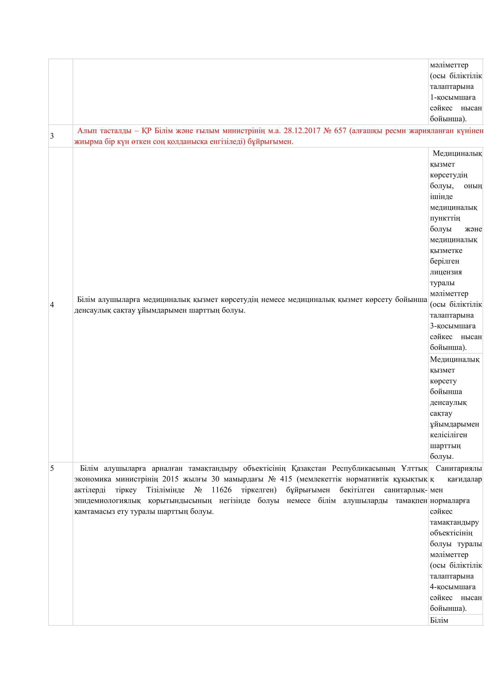 28 январь 2020 0 1 2 3 4 5 Білім беру қызметіне қойылатын біліктілік талаптарын және оларға сәйкестікті растайтын құжаттардың тізбесін бекіту туралы