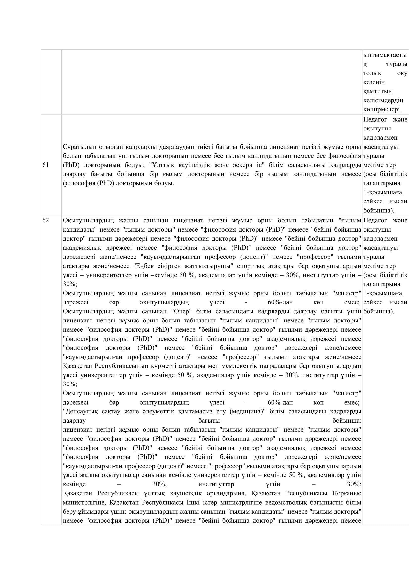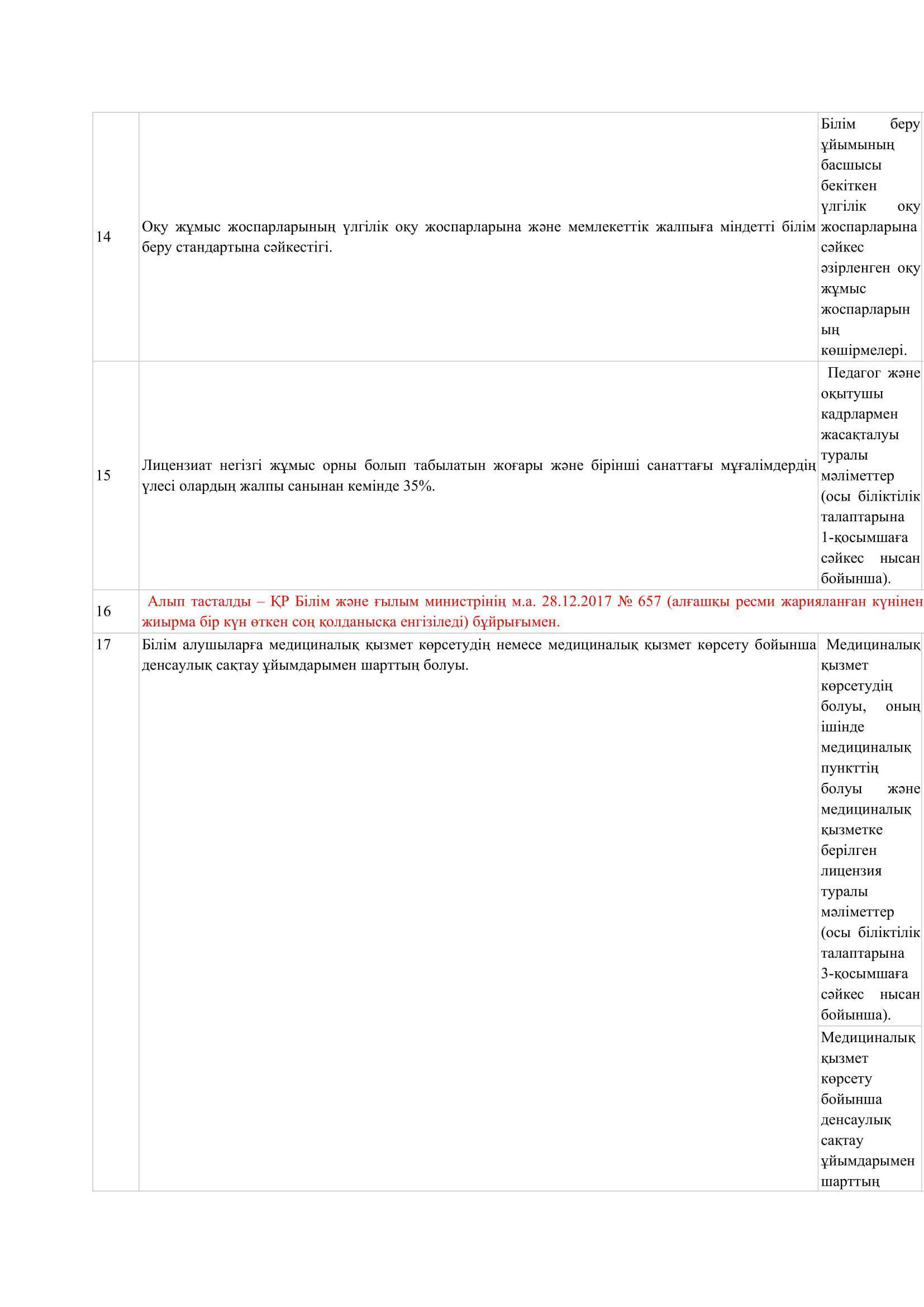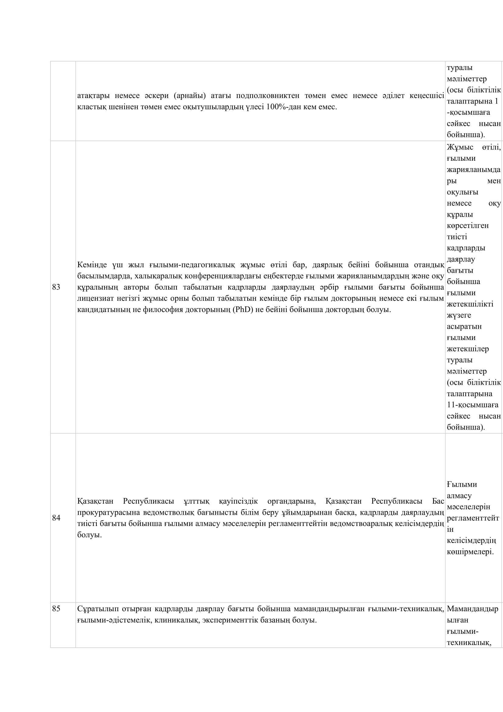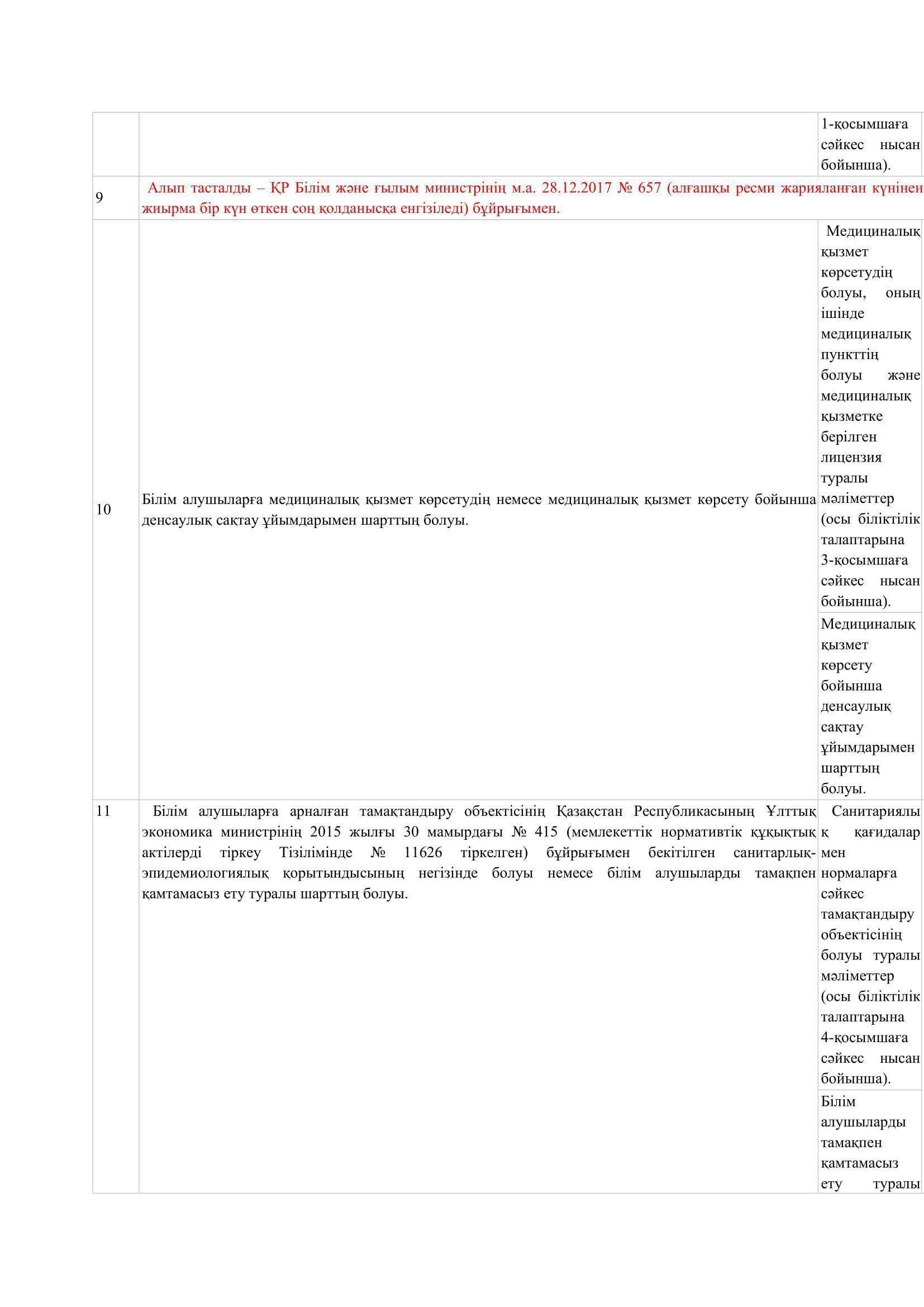 28 январь 2020 0 1 2 3 4 5 Білім беру қызметіне қойылатын біліктілік талаптарын және оларға сәйкестікті растайтын құжаттардың тізбесін бекіту туралы