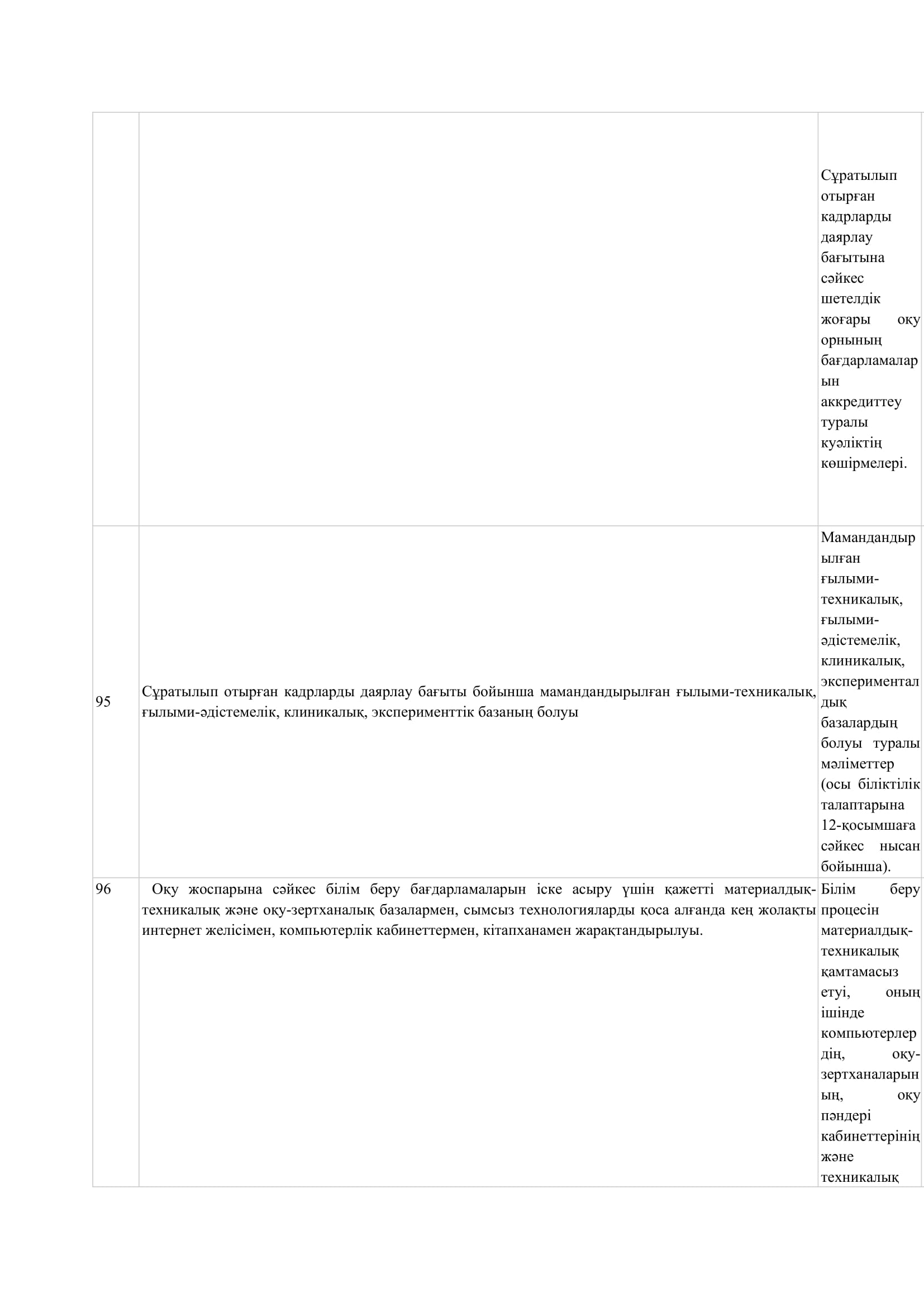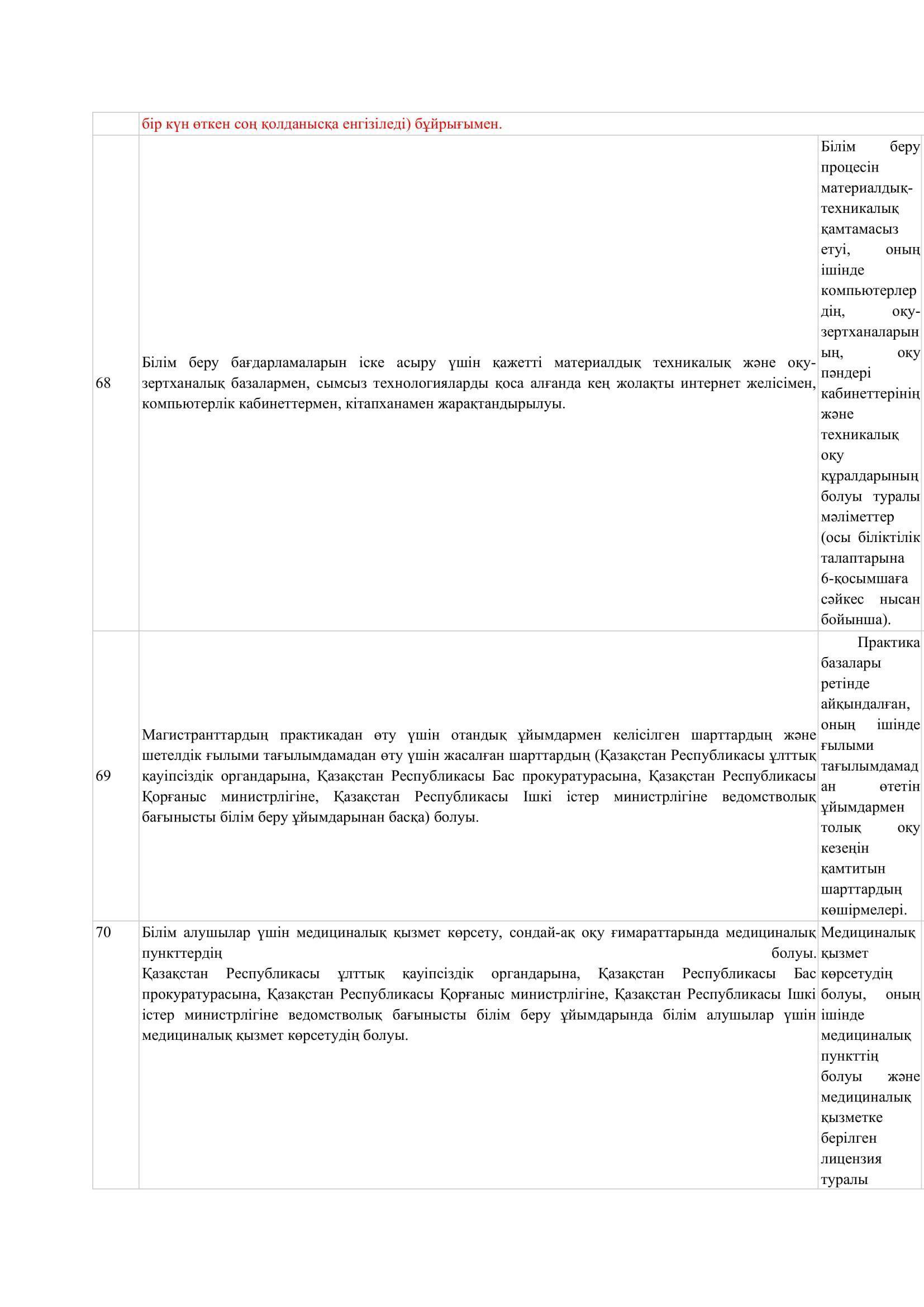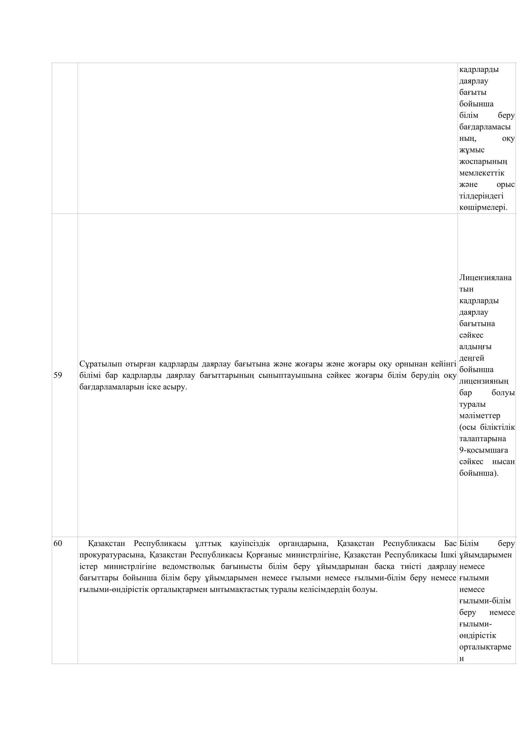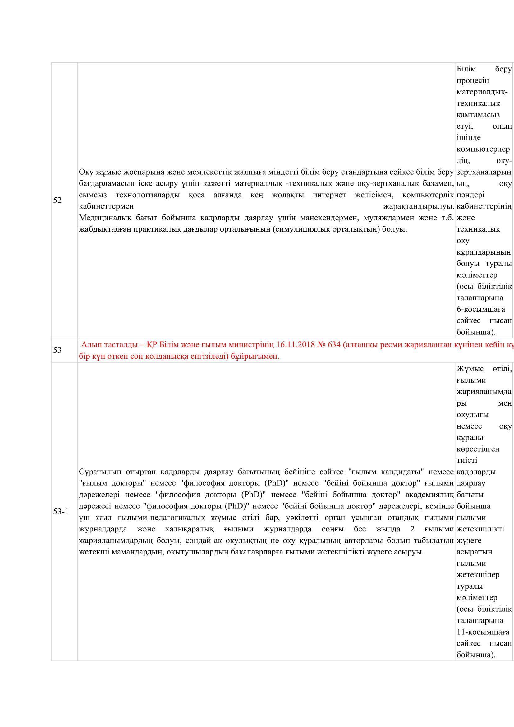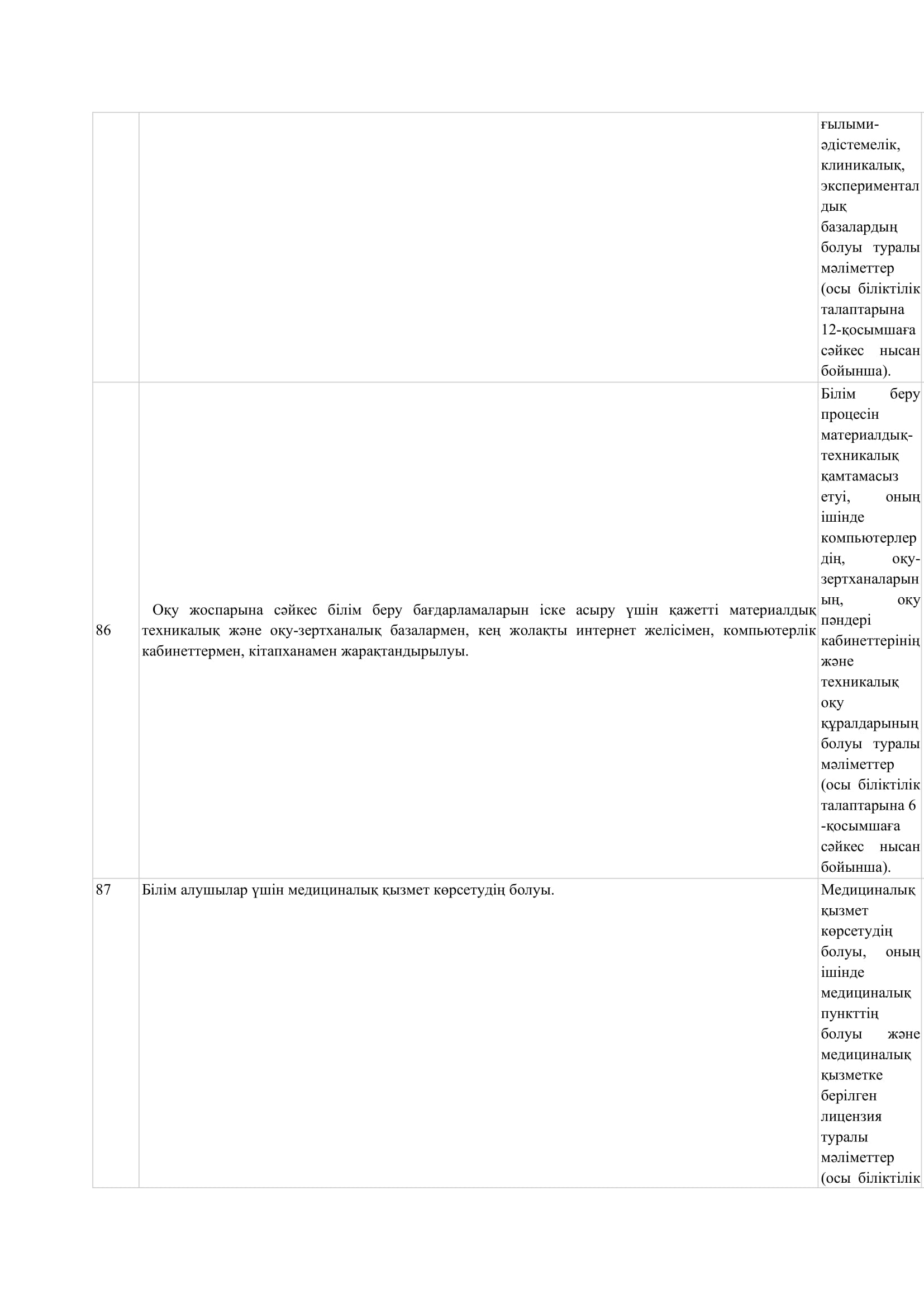 28 январь 2020 0 1 2 3 4 5 Білім беру қызметіне қойылатын біліктілік талаптарын және оларға сәйкестікті растайтын құжаттардың тізбесін бекіту туралы