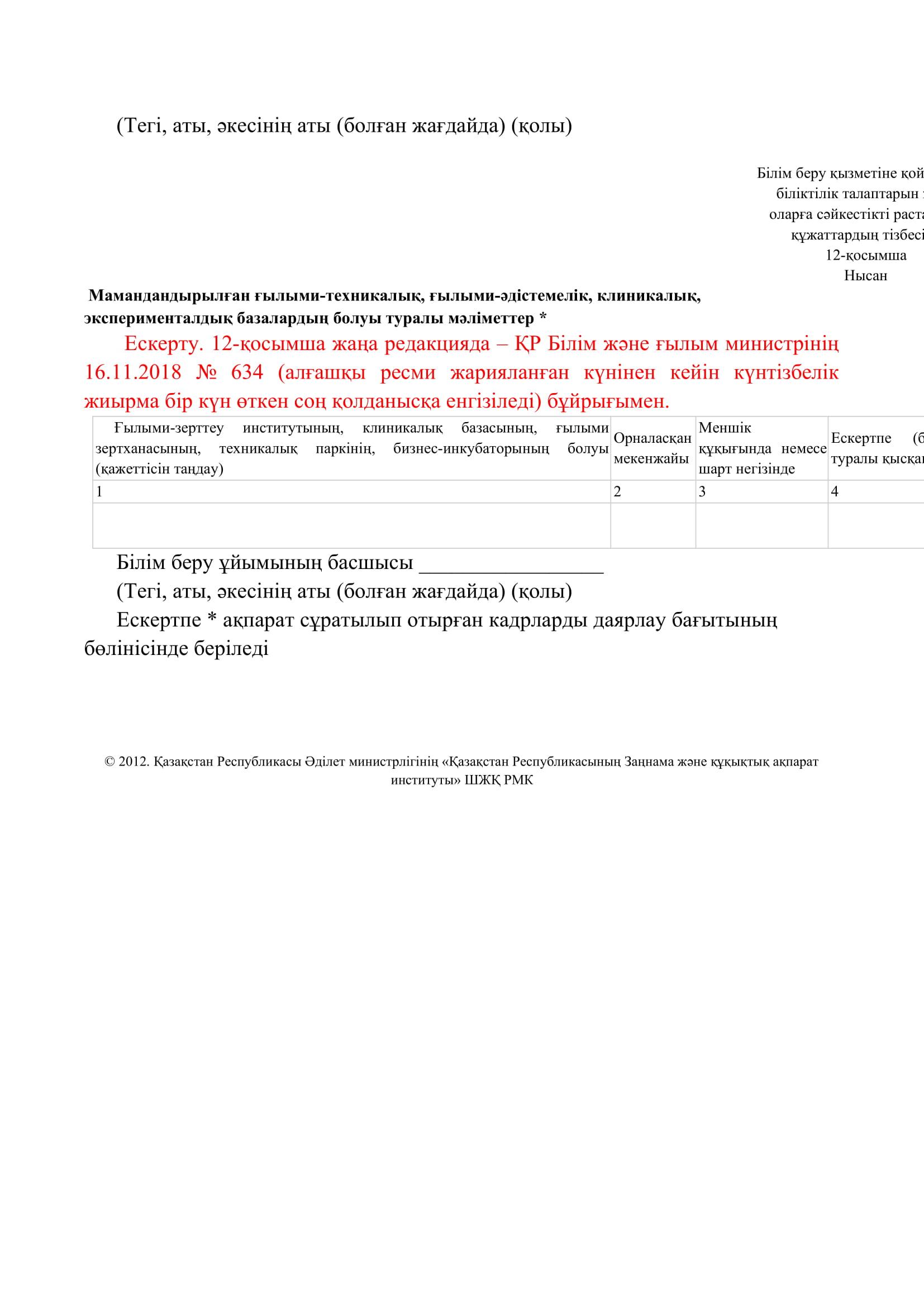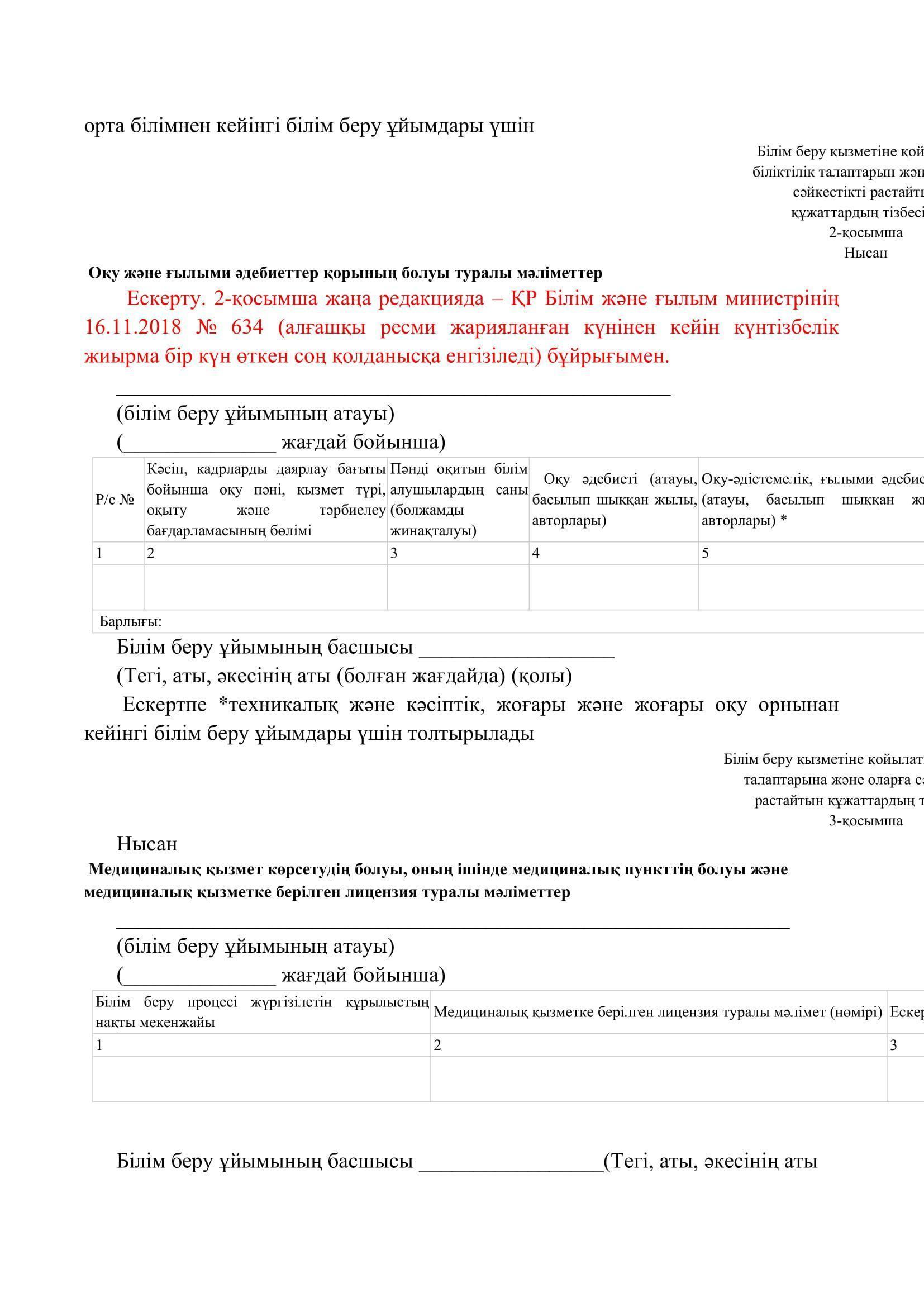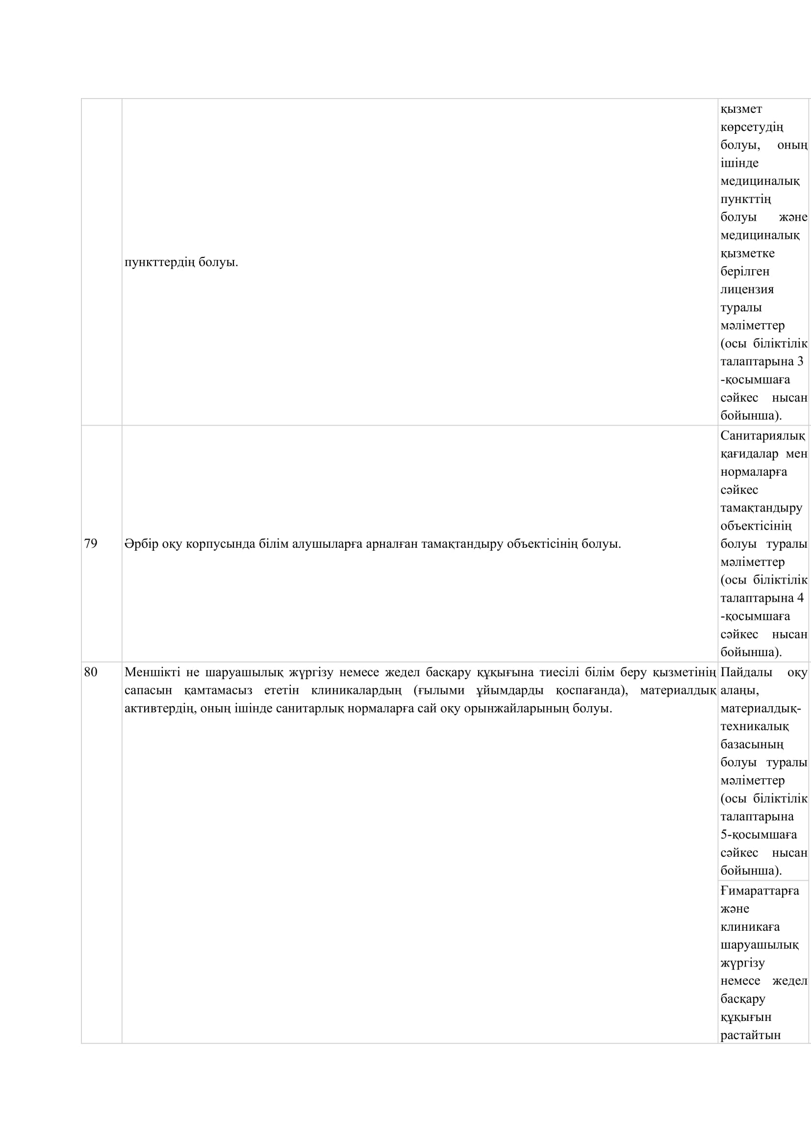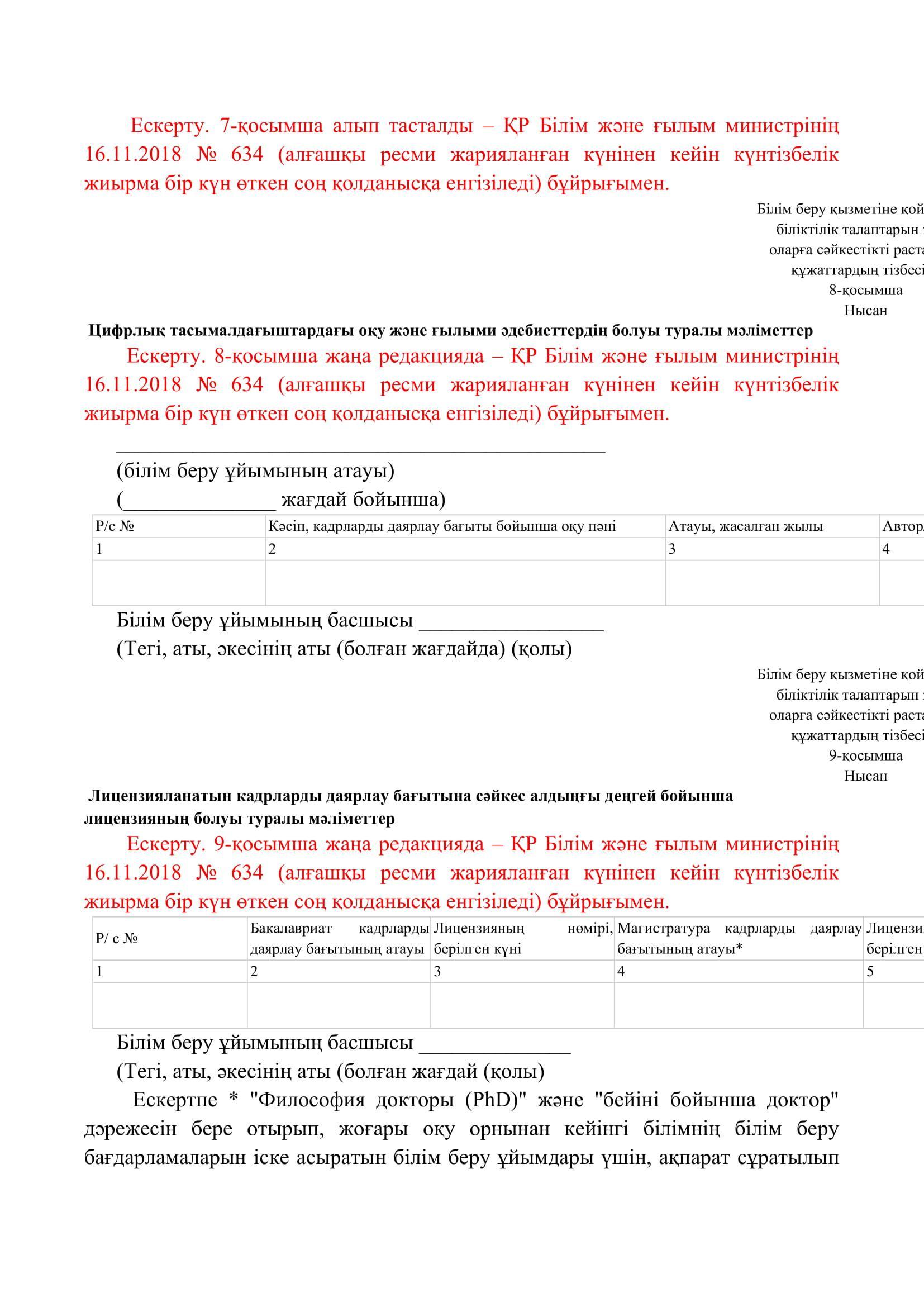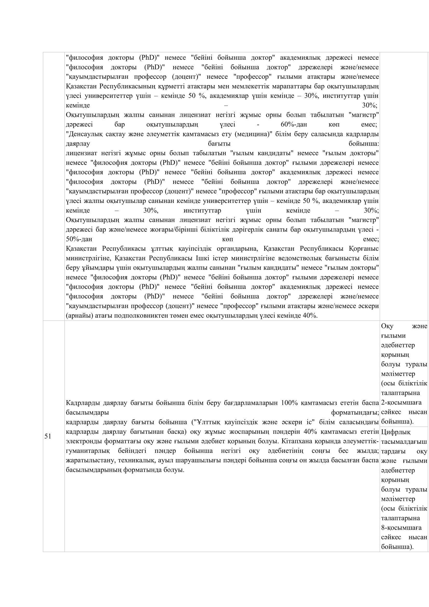 28 январь 2020 0 1 2 3 4 5 Білім беру қызметіне қойылатын біліктілік талаптарын және оларға сәйкестікті растайтын құжаттардың тізбесін бекіту туралы