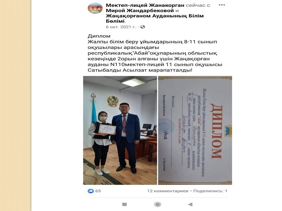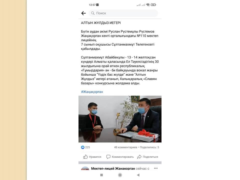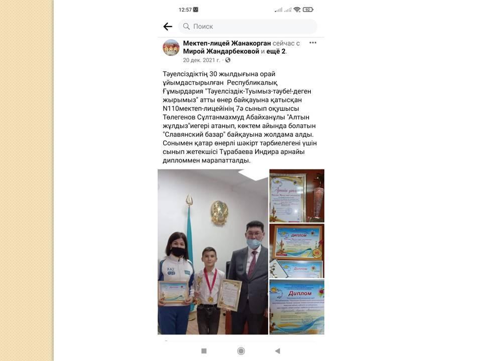Біздің жетістіктеріміз » №110 мектеп-лицей