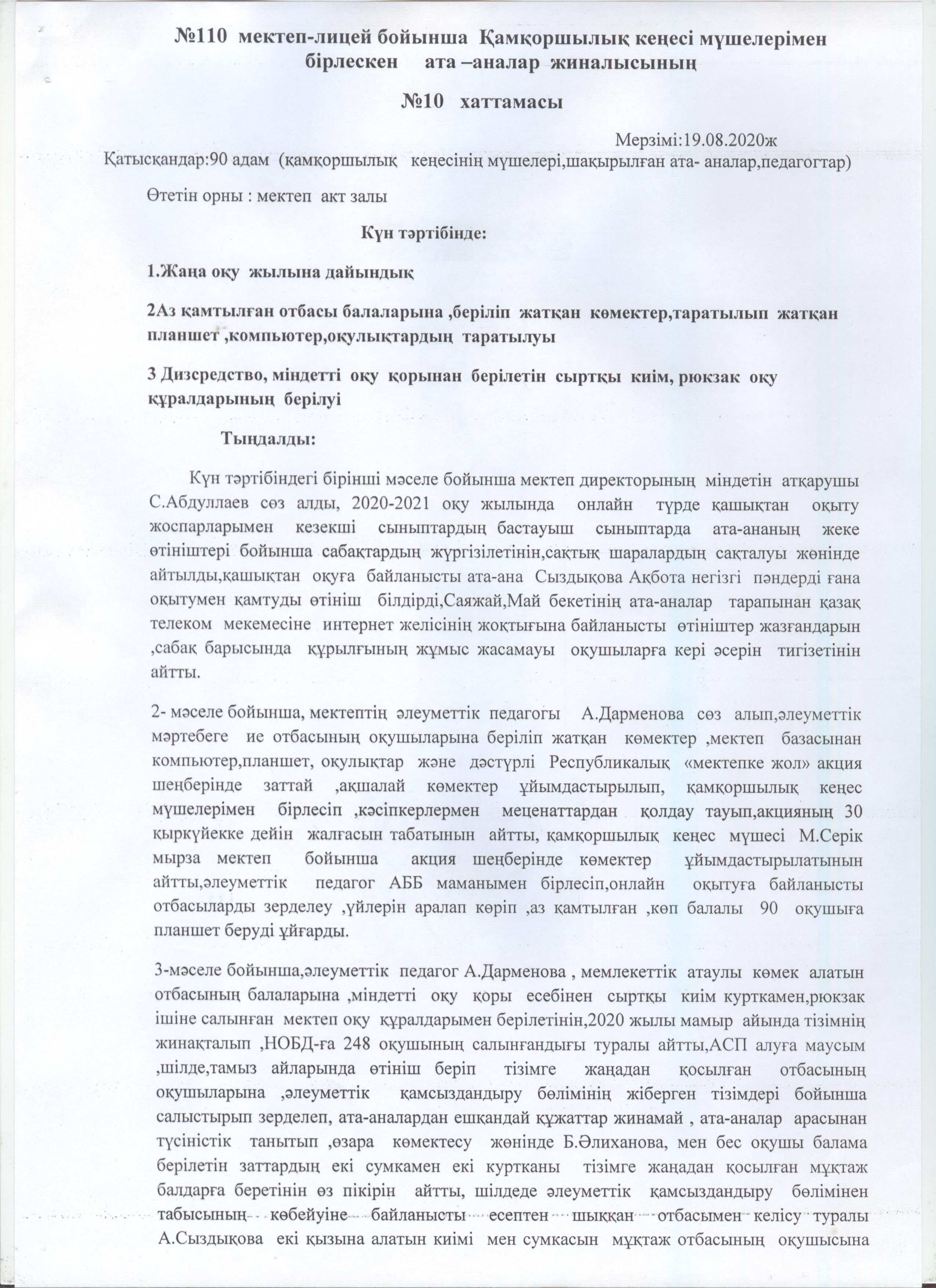 Қамқоршылық кеңестің хаттамалары » №110 мектеп-лицей