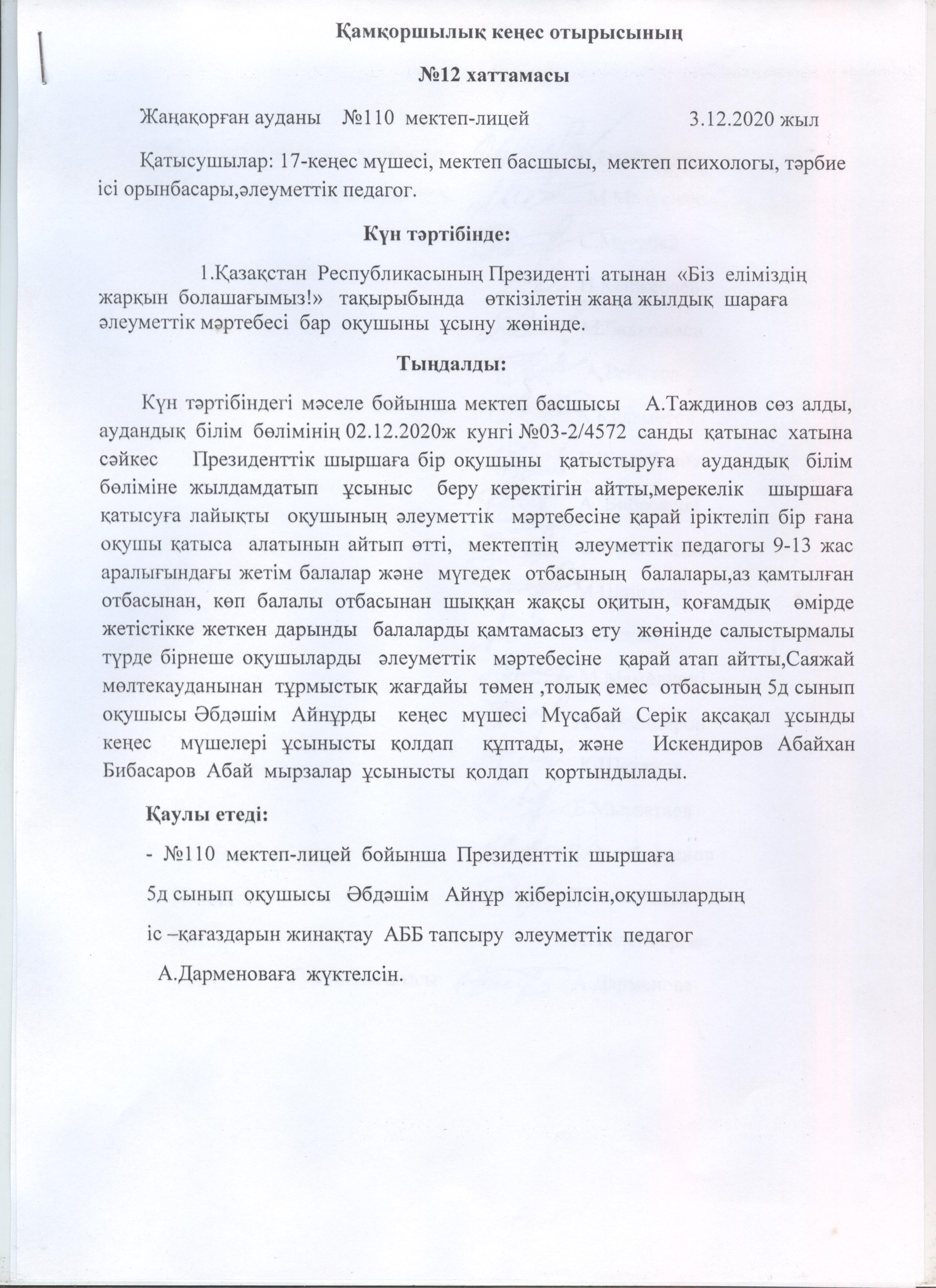 Қамқоршылық кеңестің хаттамалары » №110 мектеп-лицей