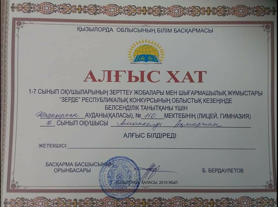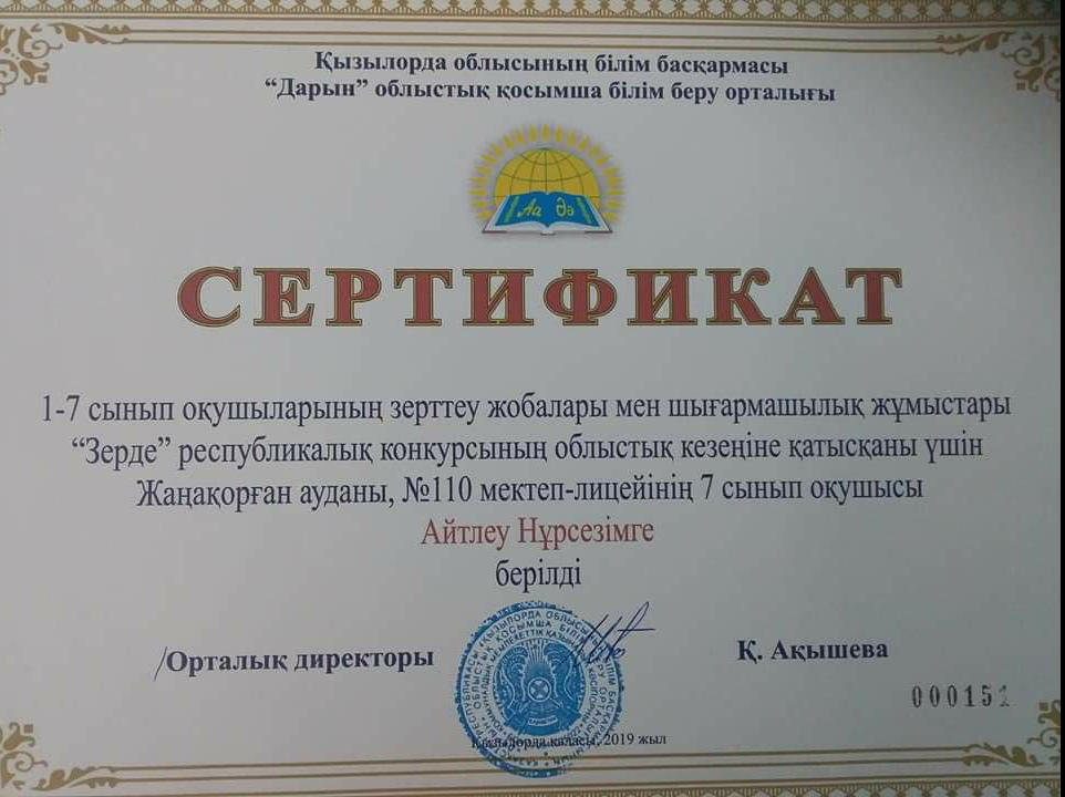 07 январь 2020 0 1 2 3 4 5 1-7 сынып оқушыларының шығармашылық жұмыстары "Зерде" республикалық конкурсы