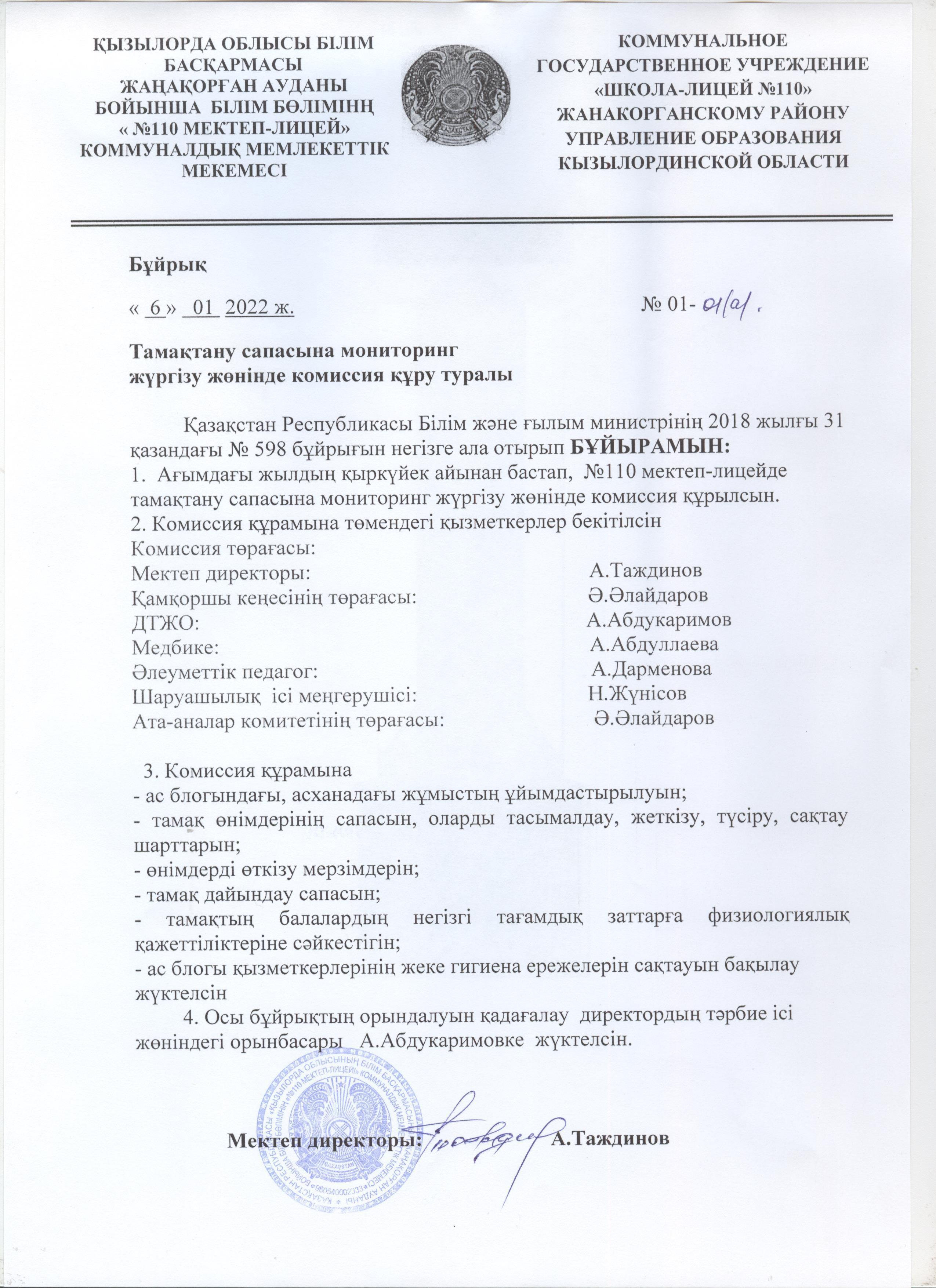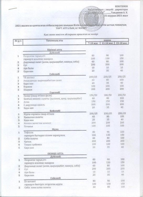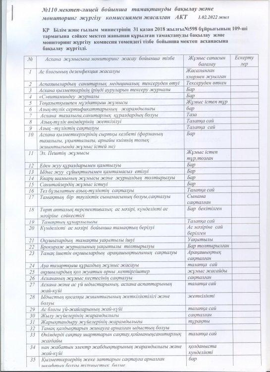 Тамақтану сапасына мониторинг жүргізу » №110 мектеп-лицей
