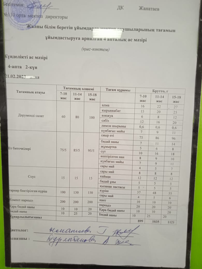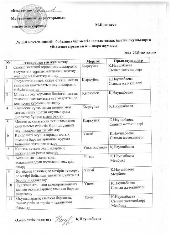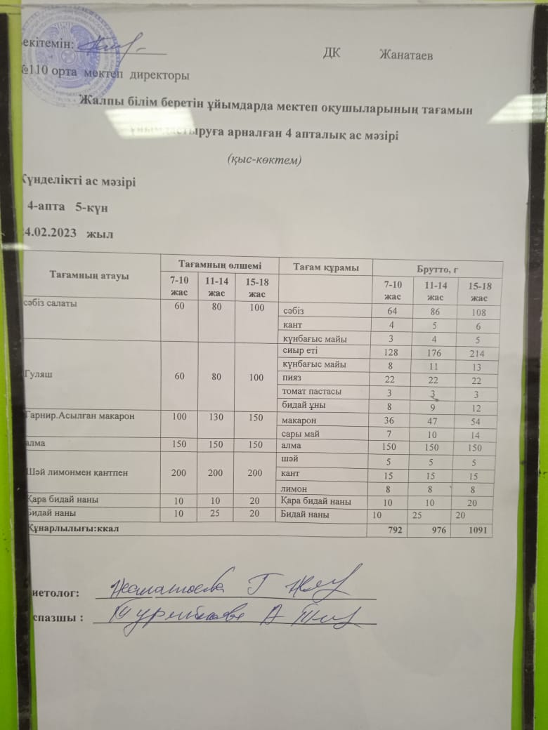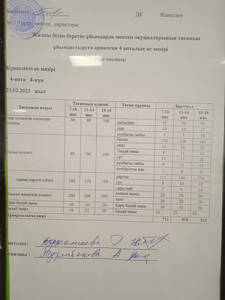 Ыстық тамақ 2022-2023 оқу жылы » №110 мектеп-лицей