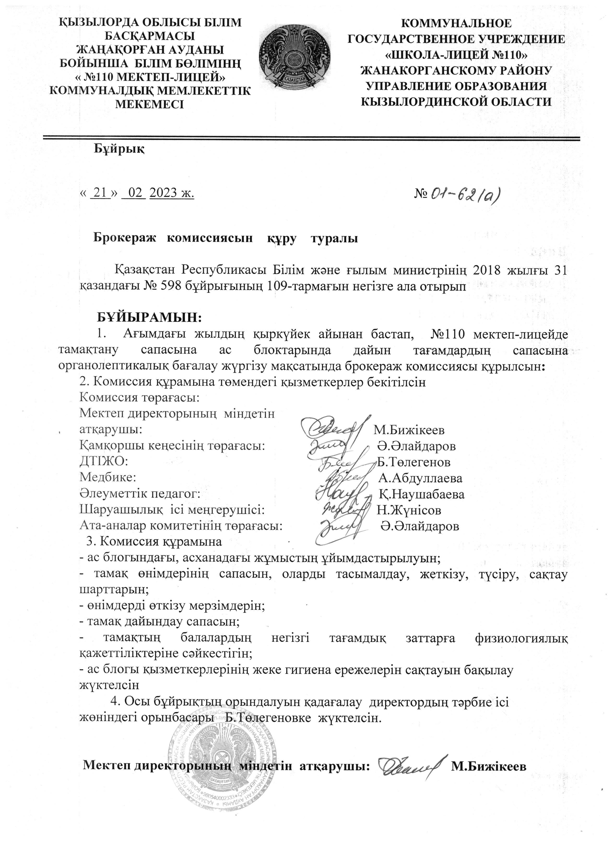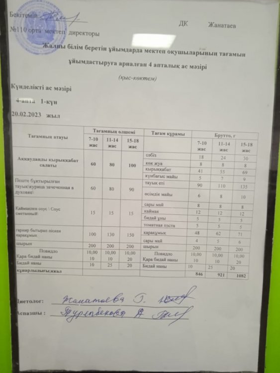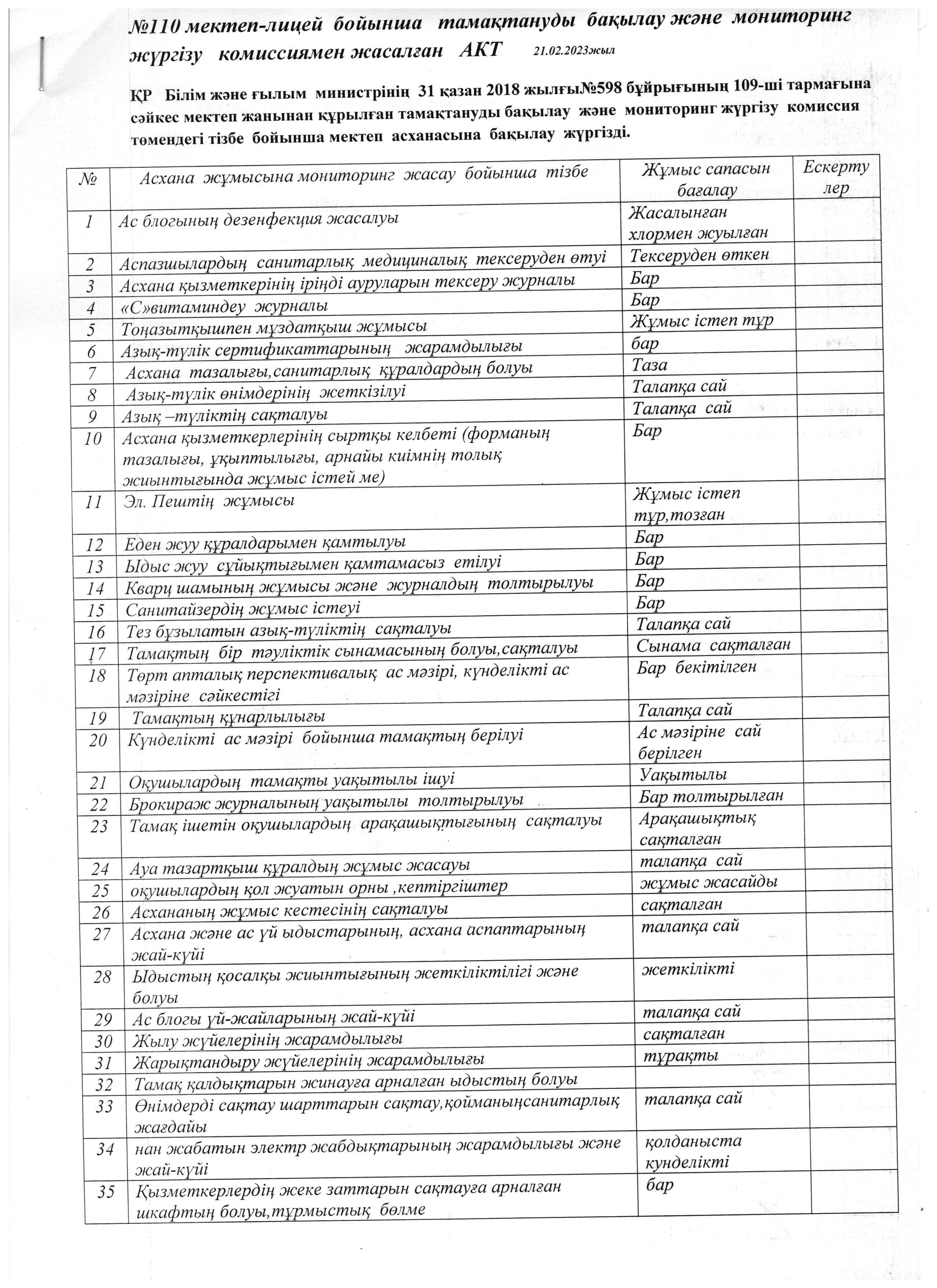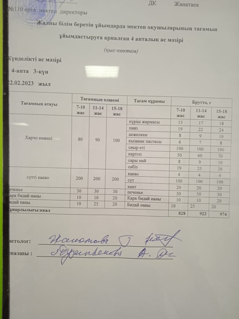 Ыстық тамақ 2022-2023 оқу жылы » №110 мектеп-лицей
